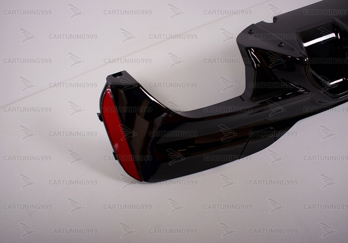 Диффузор заднего бампера M5 на BMW 5 серия G 30 изготовлен из высококачественных материалов и устанавливается в штатные места без переделок и доработок. Диффузор окрашен в черный цвет.