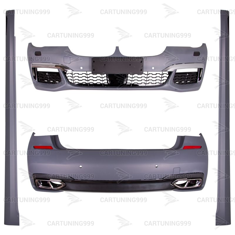 Обвес M на BMW 7 серия VI G11/G12 с 2015-н.в. изготовлен из высококачественных материалов. В комплект входит: передний бампер в сборе, задний бампер с диффузором и насадками, боковые пороги и комплект крепежа.Обвес устанавливается в штатные места без переделок и доработок.