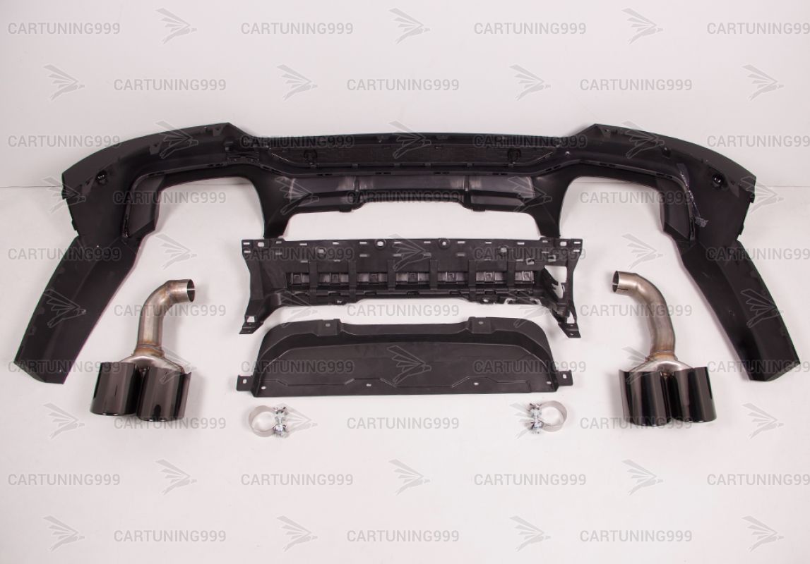 Диффузор с насадками M на BMW X4 G02 изготовлены из высококачественных материалов. Диффузор окрашен в черный цвет, насадки черные. Диффузор с насадками устанавливается в штатные места без переделок и доработок.