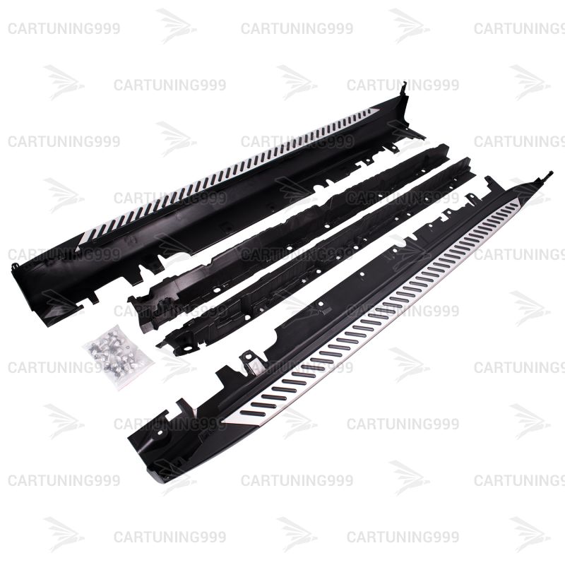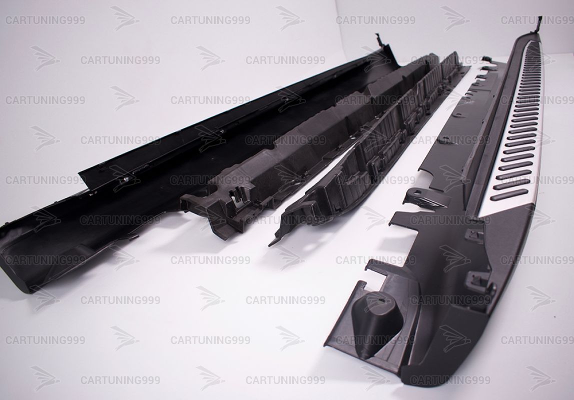 Пороги на BMW X5 F15 устанавливаются в штатные места без переделок и доработок. В комплект порогов входят: два порога левый правый, комплект крепежа.