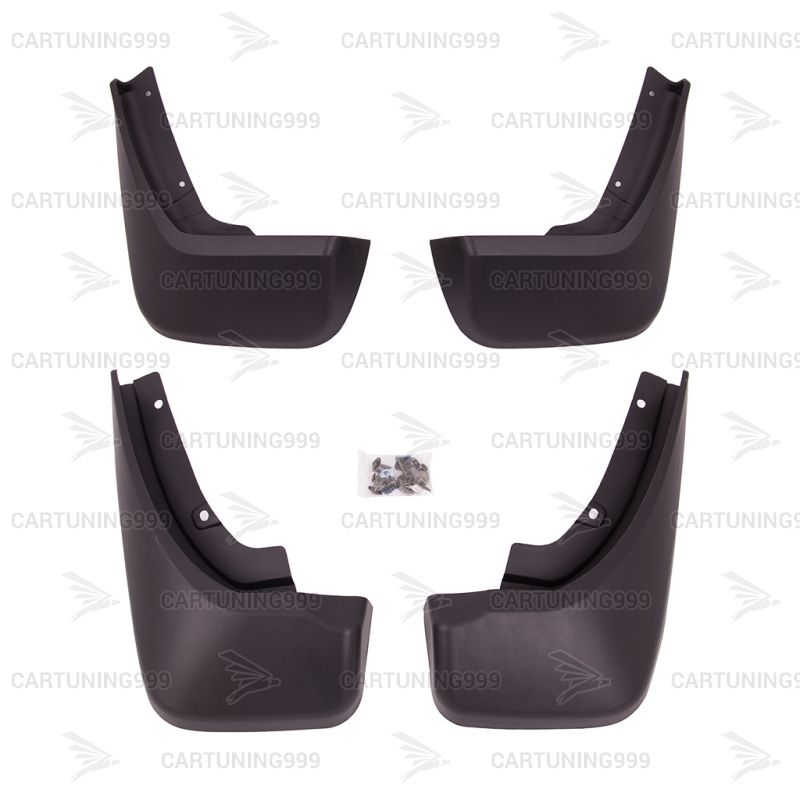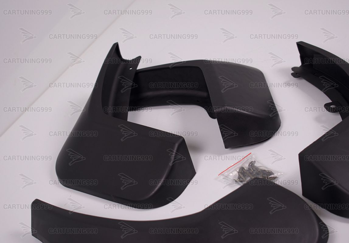 Брызговики Land Rover Discovery 5 устанавливаются в штатные места без переделок и доработок. В комплект входит два передних брызговика, два задних брызговика, комплект крепежа.