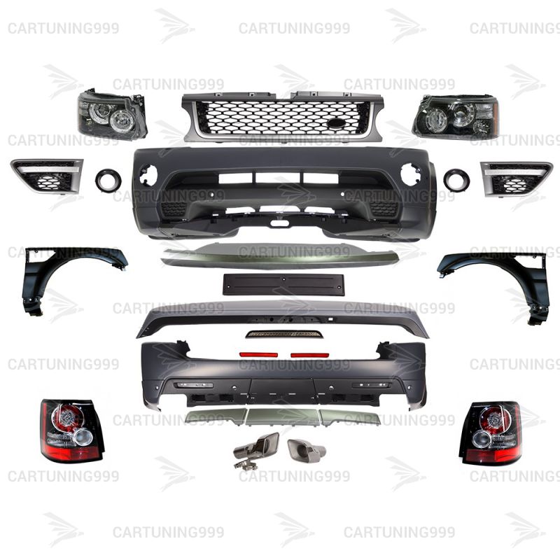 Комплект рестайлинга для Range Rover Sport изготовлен из высококачественных материалов.Устанавливается в штатные места без переделок и доработок.В комплект входит: передний бампер в сборе, решетка радиатора, передние фары, передние крылья, жабры в крылья, задний бампер в сборе, насадки на выхлопные трубы ( для бензинового автомобиля ), спойлер, задние фонари, комплект крепежа.