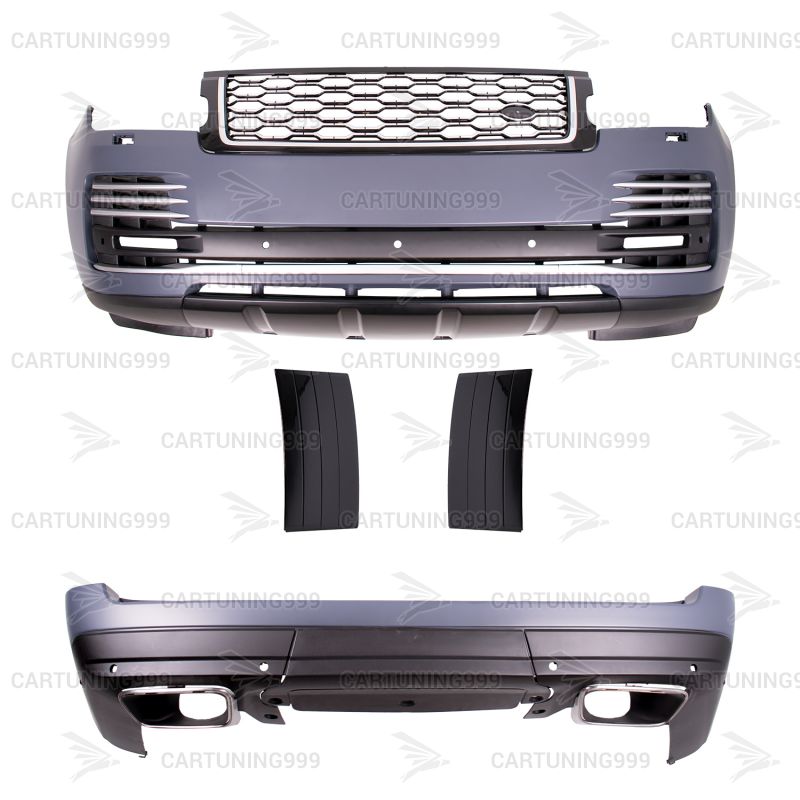 Обвес рестайлинг 2017 на Range Rover с 2013-2016 изготовлен из высококачественных материалов и устанавливается в штатные места без переделок и доработок. Комплект рестайлинга на Range Rover поставляется под окрас. В комплект рестайлинга входит: передний бампер в сборе, решетка радиатора, жабры в двери, задний бампер в сборе, насадки на глушитель и комплект крепежа.