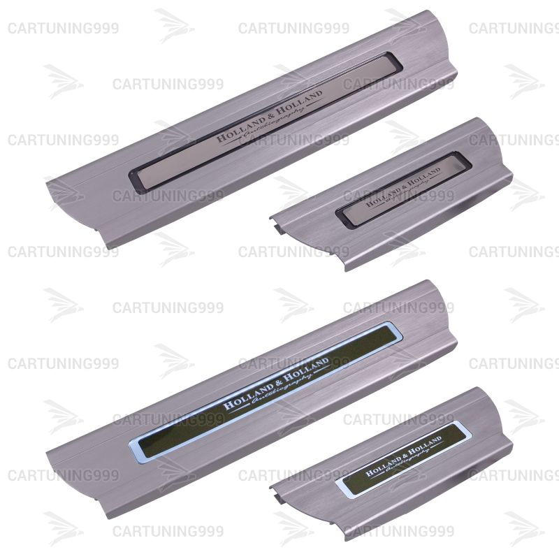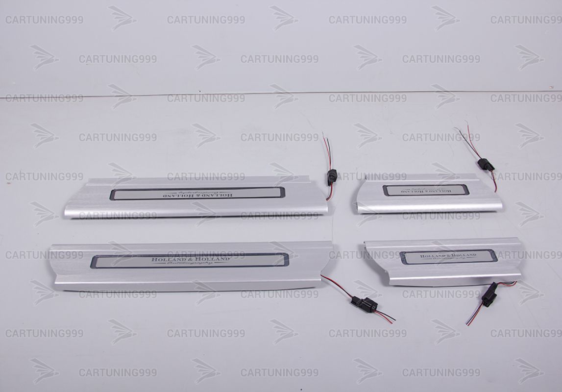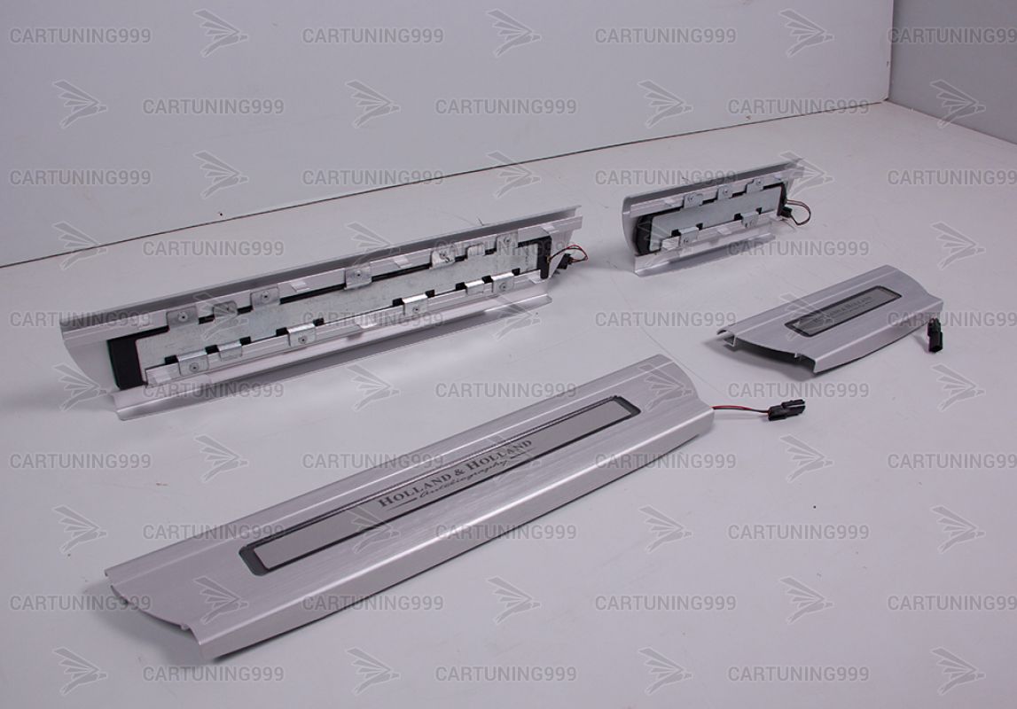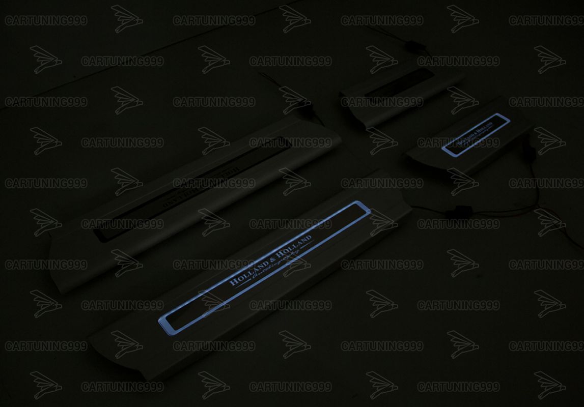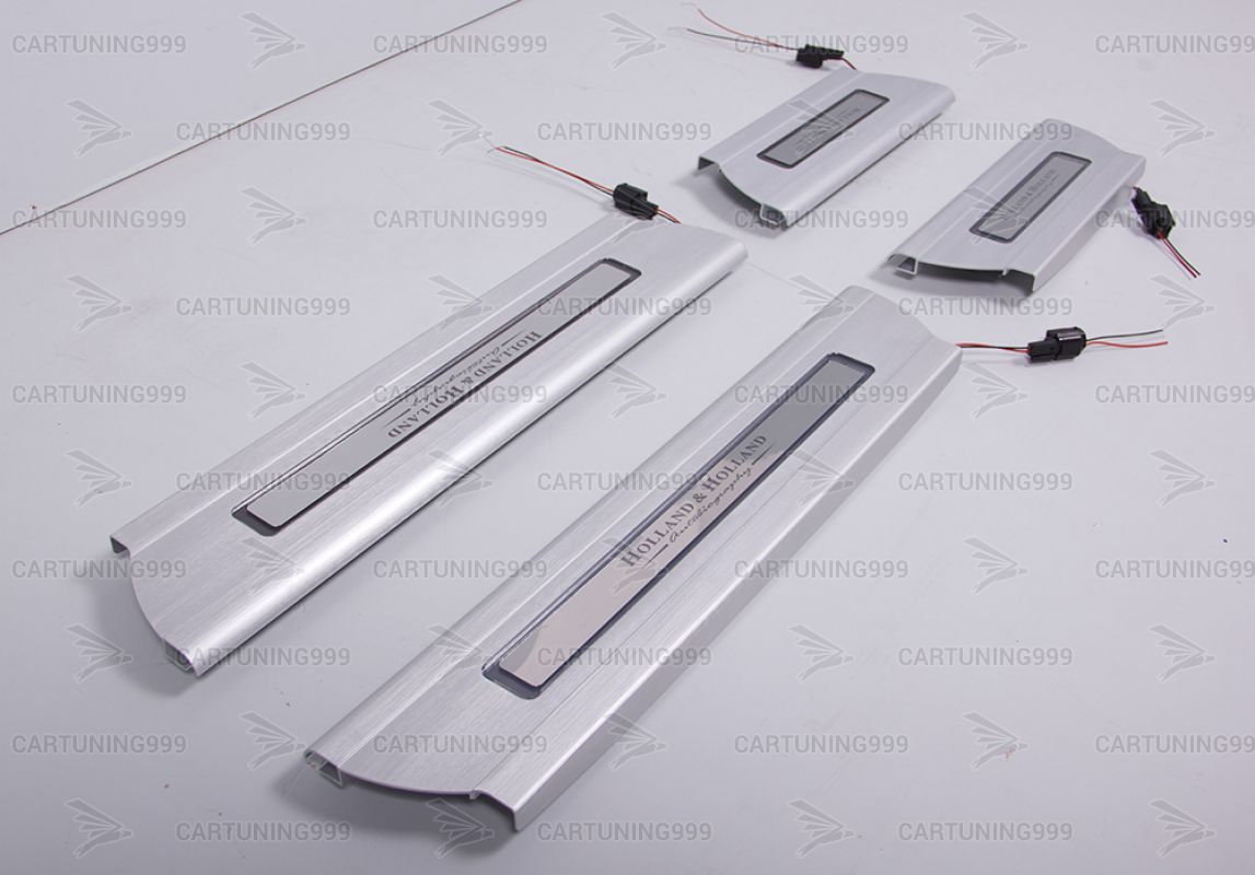 Накладки на пороги с подсветкой Holland & Holland для Range Rover изготовлены из высококачественных материалов и устанавливаются в штатные места без переделок и доработок. В комплект входит: 4 накладки и комплект проводки.