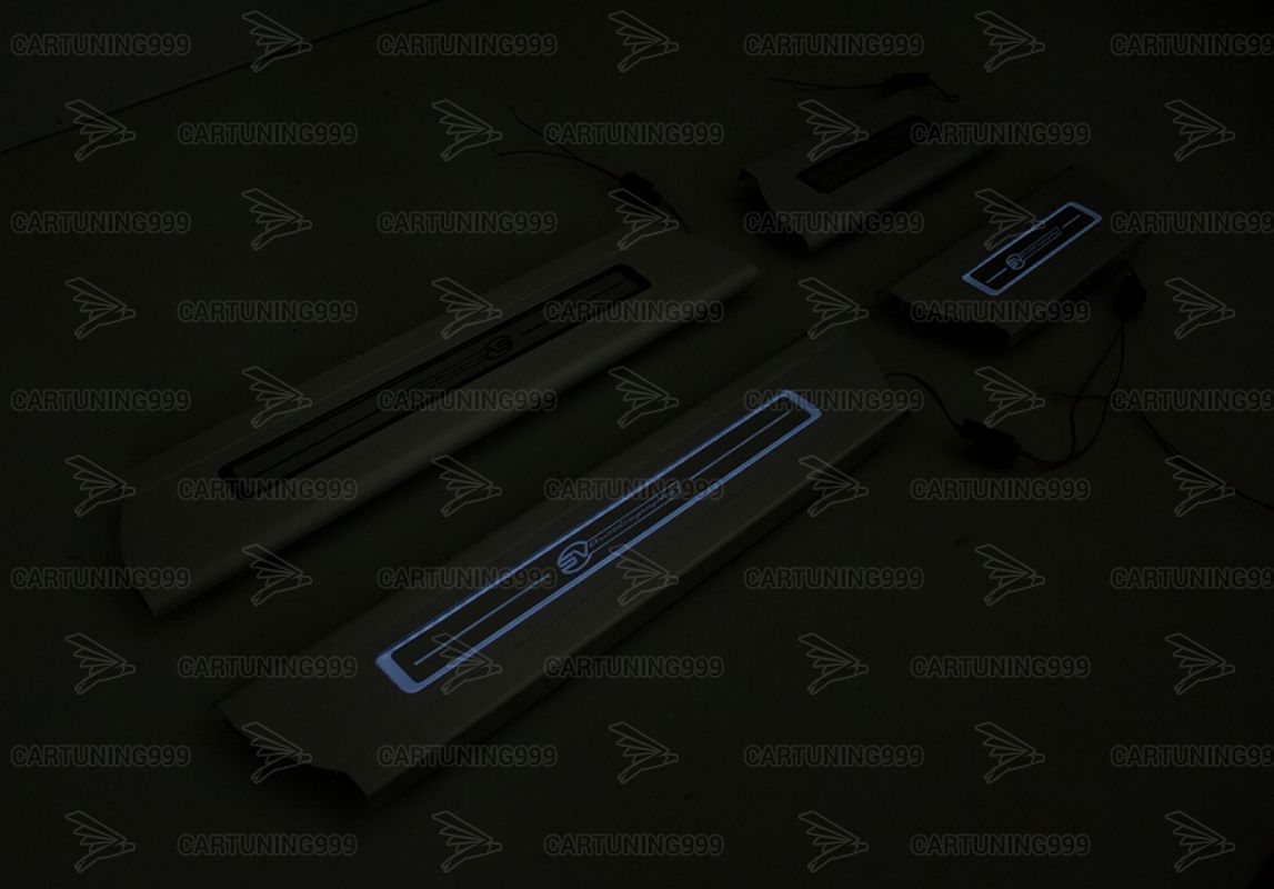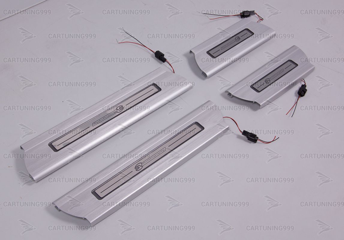 Накладки на пороги с подсветкой SVAutobiographi для Range Rover изготовлены из высококачественных материалов и устанавливаются в штатные места без переделок и доработок. В комплект входит: 4 накладки и комплект проводки.