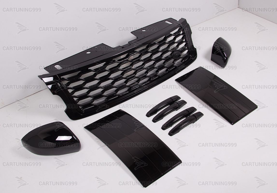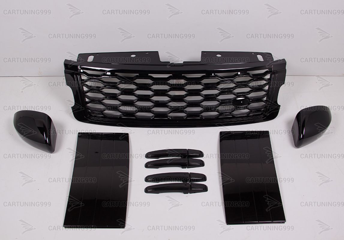 Комплект дооснащение Night Paket на Range Rover изготовлен из высококачественных материалов и окрашен в черный цвет. В комплект обвеса входит: решетка радиатора, решетки в бампер, накладка на передний бампер, жабры в двери, крышки зеркал, ручки открывания дверей, молдинги на двери, накладки на задний бампер, накладка на заднюю крышку багажника.