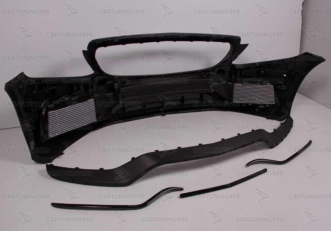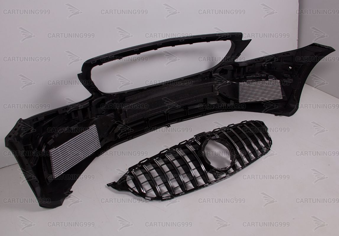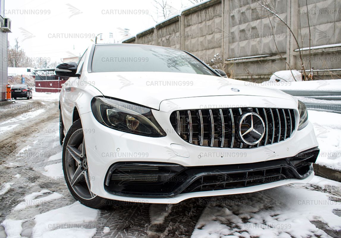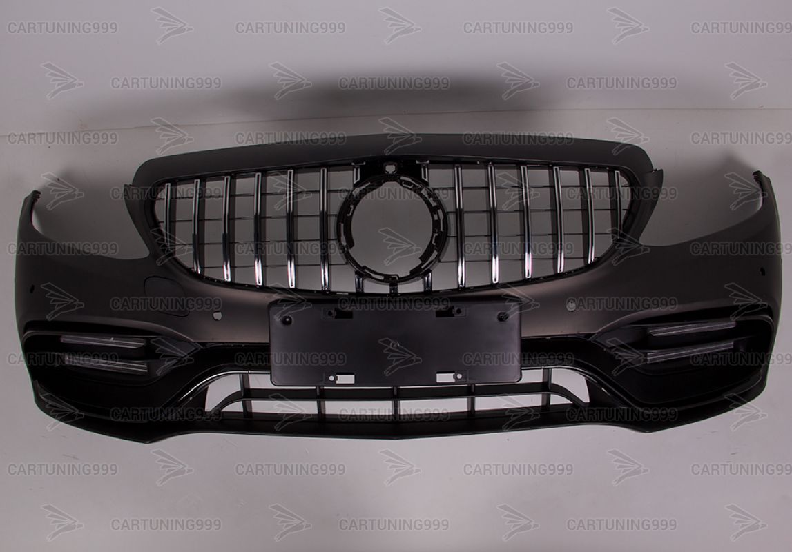 Передний бампер 63 AMG на Mercedes C-class W205 изготовлен из высококачественных материалов и устанавливается в штатные места без переделок и доработок. В комплект входит: передний бампер в сборе, решетка радиатора, фальш радиаторов, и комплект крепежа.