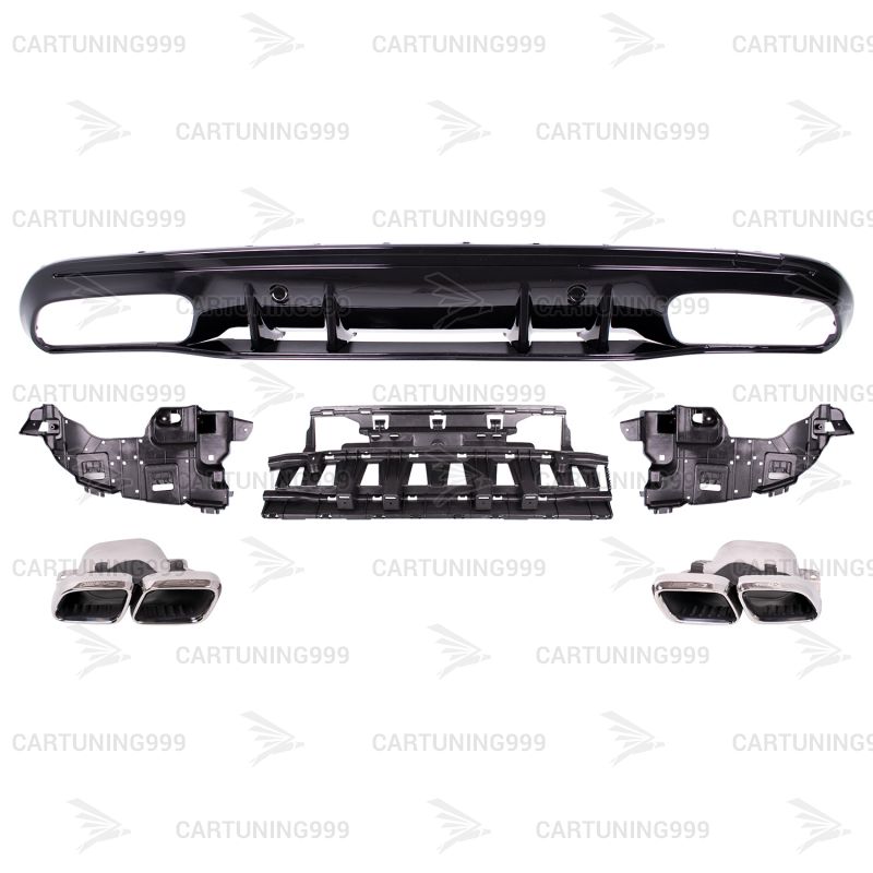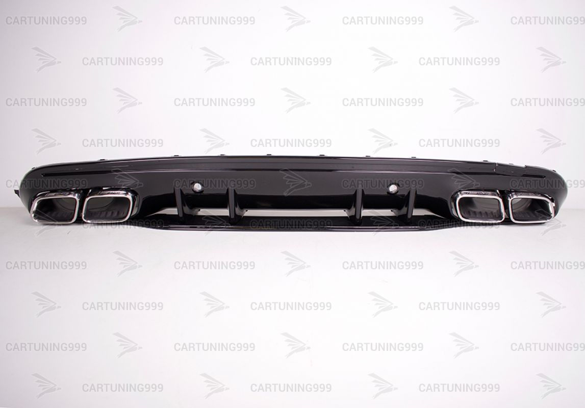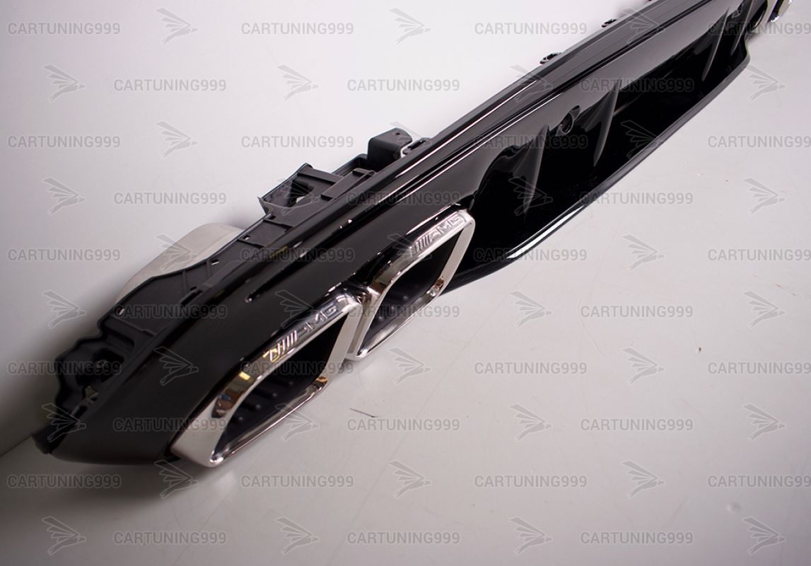 Диффузор с насадками 63s AMG на Mercedes C-class W205 изготовлены из высококачественных материалов и устанавливается в штатные места без переделок и доработок. Диффузор окрашен в черный цвет насадки хром с гравировкой AMG.