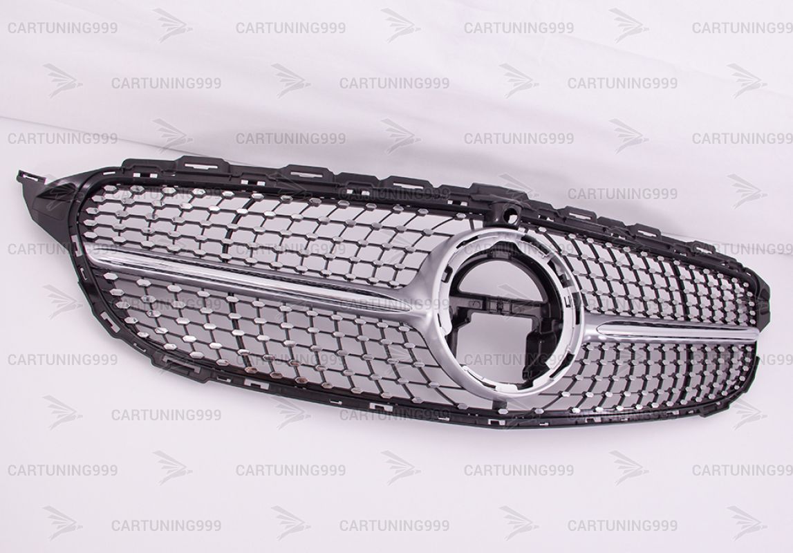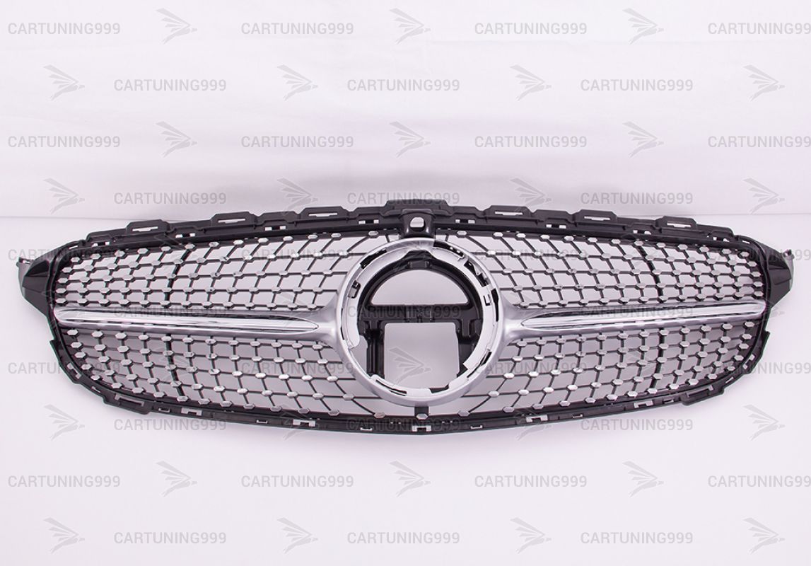 Решетка радиатора Diamond Sport Mercedes C-klasse W205 серебро под камеру