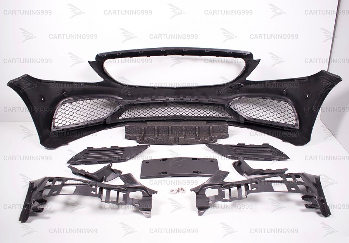 Передний бампер для Mercedes С-Сlass Coupe C 205 от версии 63 AMG. В комплект входит: решетка радиатора, облицовка бампера, центральная и боковые сетки, нижние накладки, накладки на воздуховоды. Данный бампер устанавливается на любой С-klass в кузове W 205 без каких либо переделок. Все детали сделаны из высококачественного АБС пластика, поставляются под окрас.