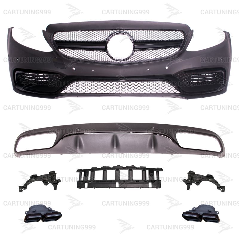 Обвес 63 AMG для Mercedes С-Сlass C 205 Coupe в AMG пакете. Обвес является точной копией обвеса C63 AMG для Mercedes C-Klasse W 205 Coupe. В комплект входит передний бампер в сборе, решетка радиатора, задний диффузор, крепления насадок и насадки на глушитель. Обвес устанавливается на штатные места. Все детали сделаны из высококачественного пластика, поставляются под окрас.