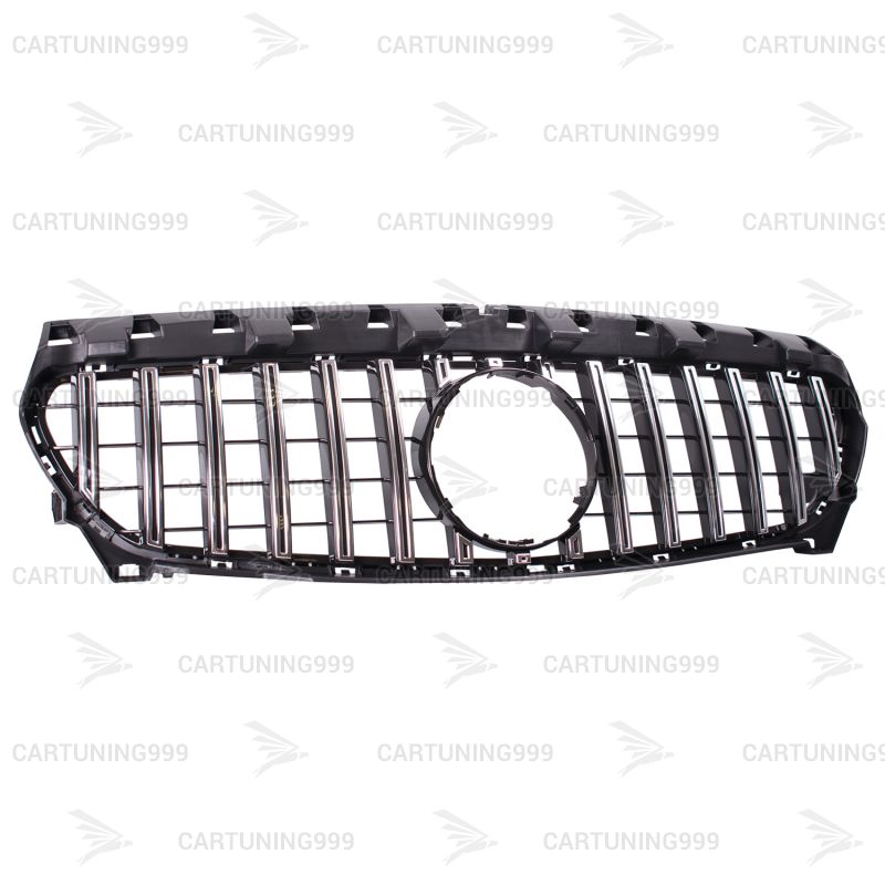 Решетка радиатора GT дизайн на Mercedes CLA C117, X117 изготовлена из высококачественных материалов и устанавливается в штатные места взамен штатной решетки радиатора.