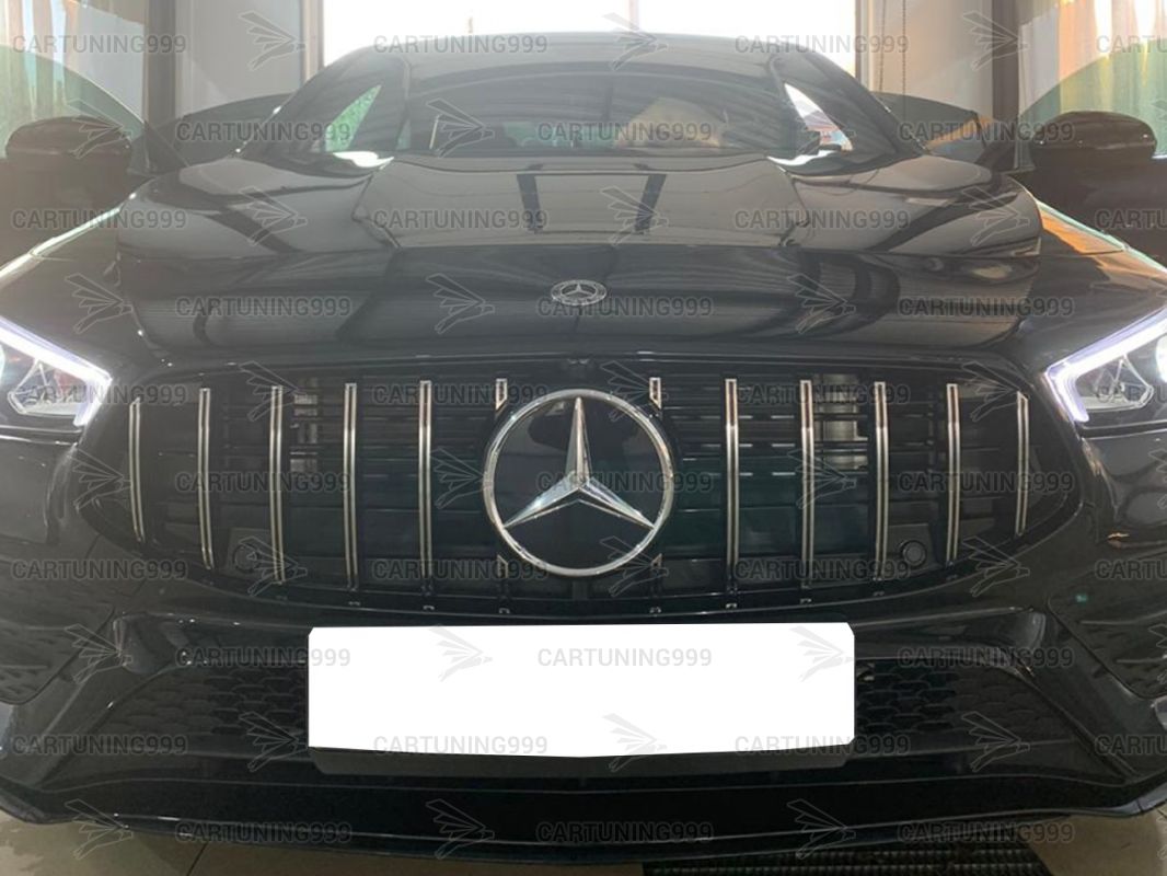 Решетка радиатора GT дизайн на Mercedes CLA C118, X118 изготовлена из высококачественных материалов и устанавливается в штатные места без переделок и доработок