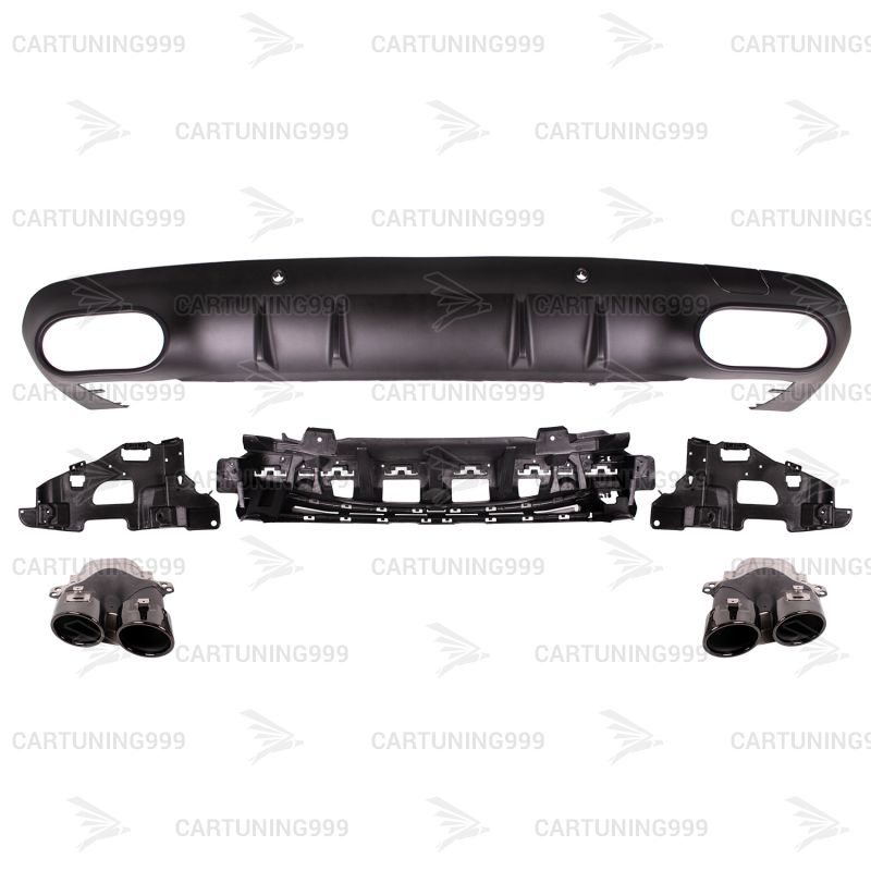 Диффузор c насадками 53 AMG Mercedes CLS-class C 257 изготовлены из высококачественных материалов и устанавливается в штатные места без переделок и доработок. В комплект входит: диффузор заднего бампера, насадки на выхлопные трубы, комплект крепежа. Насадки изготовлены и полированной нержавеющей стали и окрашены в черный цвет.