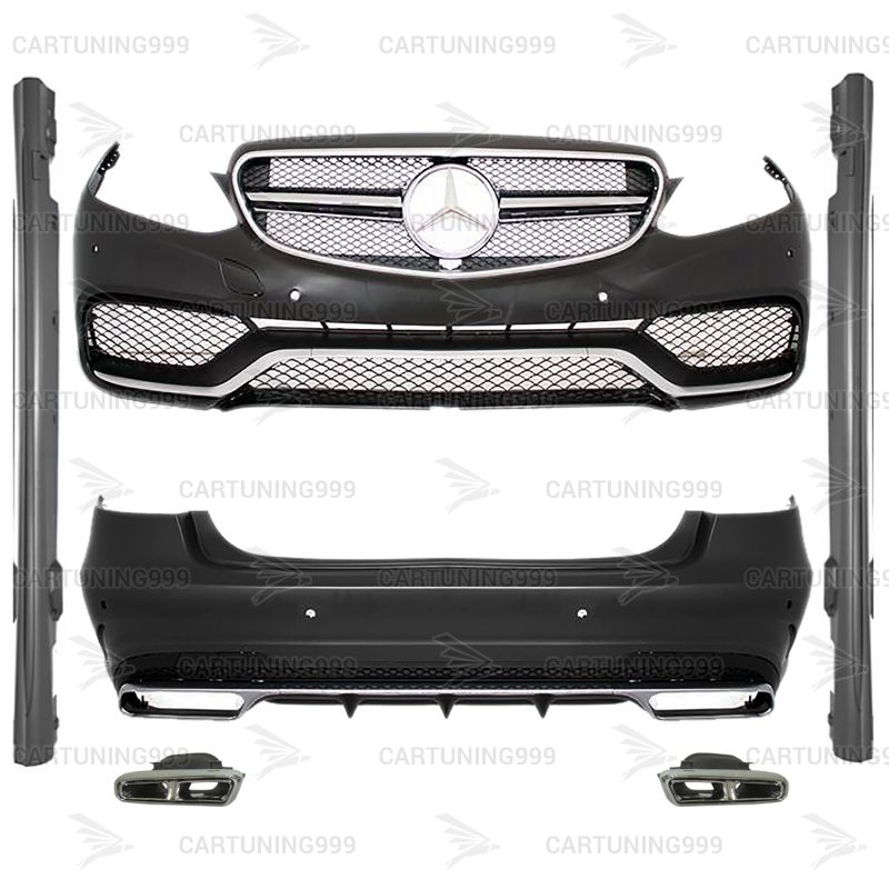 Обвес для рестайлинга Mercedes E-Class E 212 в версию E63 AMG E212.Обвес является точной копией обвеса 63 AMG для Mercedes E-Class W212 после рестайлинга. В комплект входит передний бампер в сборе, решетка радиатора, пороги, задний бампер в сборе с диффузором и насадками на глушитель. Обвес устанавливается на штатные места без замены передних крыльев. Все детали сделаны из высококачественного АБС пластика, поставляются под окрас.