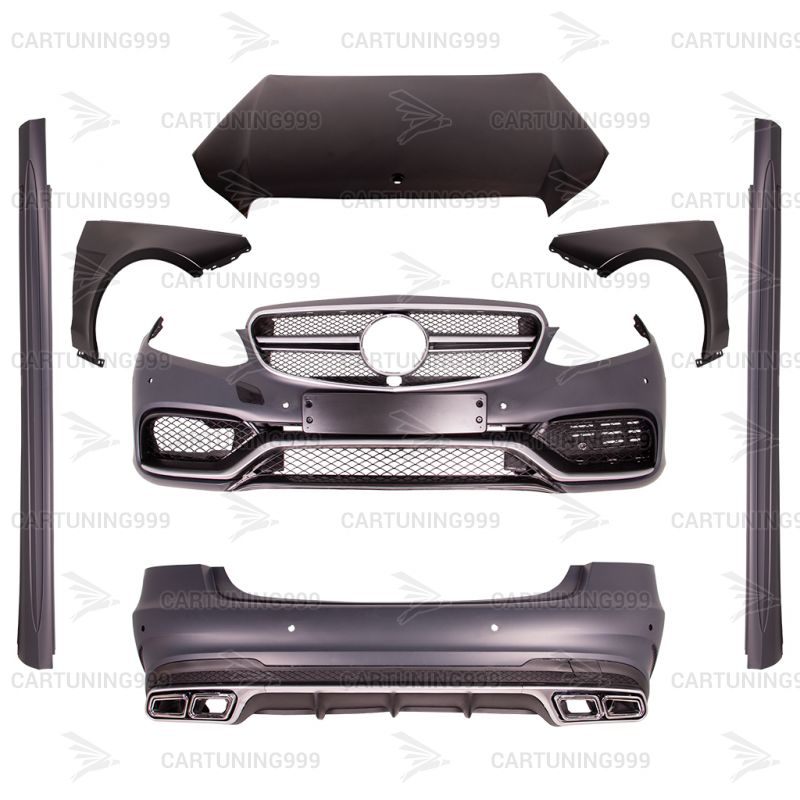 Обвес 63 AMG на Mercedes E-class W212 изготовлен из высококачественных материалов и устанавливается в штатные места без переделок и доработок. В комплект обвеса входит: передний бампер в сборе с решеткой радиатора, защита двигателя, капот, передние крылья, боковые пороги AMG, задний бампер с диффузором и насадками и комплект крепежа для корректной установки обвеса.