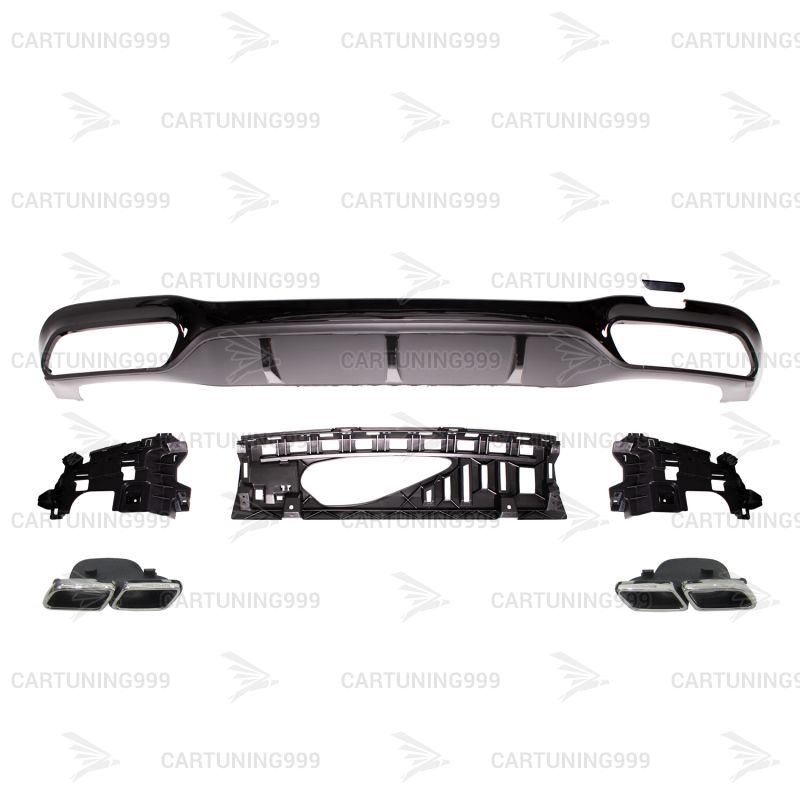 Диффузор и насадки 63 AMG Mercedes E-Class E 213 устанавливается на любой автомобиль E-klass в кузове W 213 в AMG пакете. В комплект входит диффузор с хромированной полосой, хромированные насадки на выхлопные трубы с гравировкой AMG и крепления для насадок.