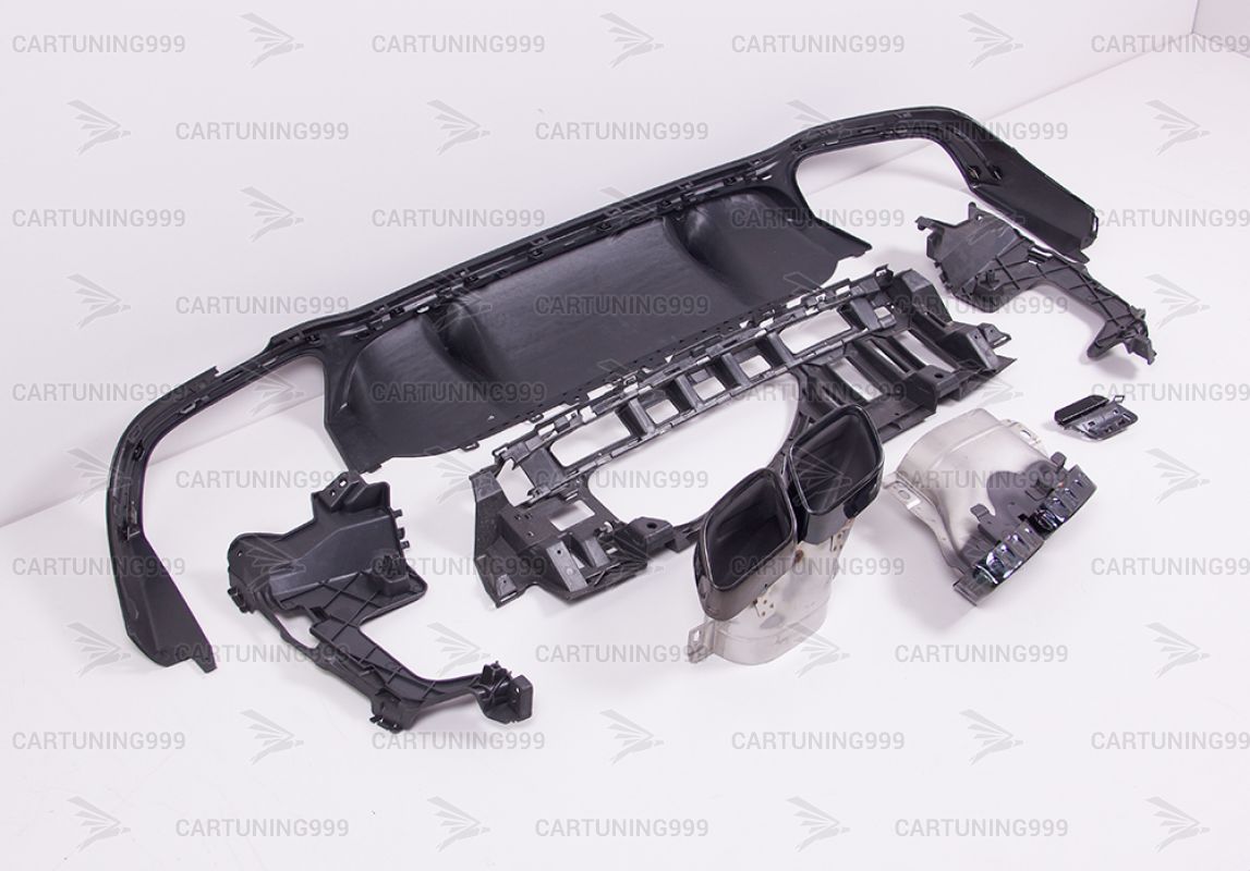 Диффузор с насадками 63 AMG на Mercedes E-class изготовлены из высококачественных материалов и устанавливается в штатные места без переделок и доработок. В комплект входит: диффузор заднего бампера окрашенный в черный цвет с черной вставкой, кронштейны насадок, черные насадки на глушитель с гравировкой AMG.