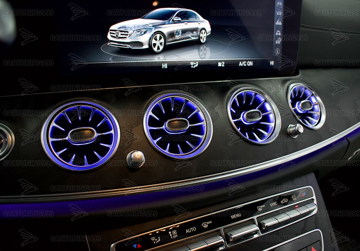 Воздуховоды вентилятора салона на Mercedes E-class W213 изготовлены из высококачественных материалов и устанавливаются в штатные места без переделок и доработок. Дефлекторы работают в 64 режимах подсветки салона. Комплект состоит из 4 центральных дефлекторов и 2 боковых, блок и комплект проводки.
