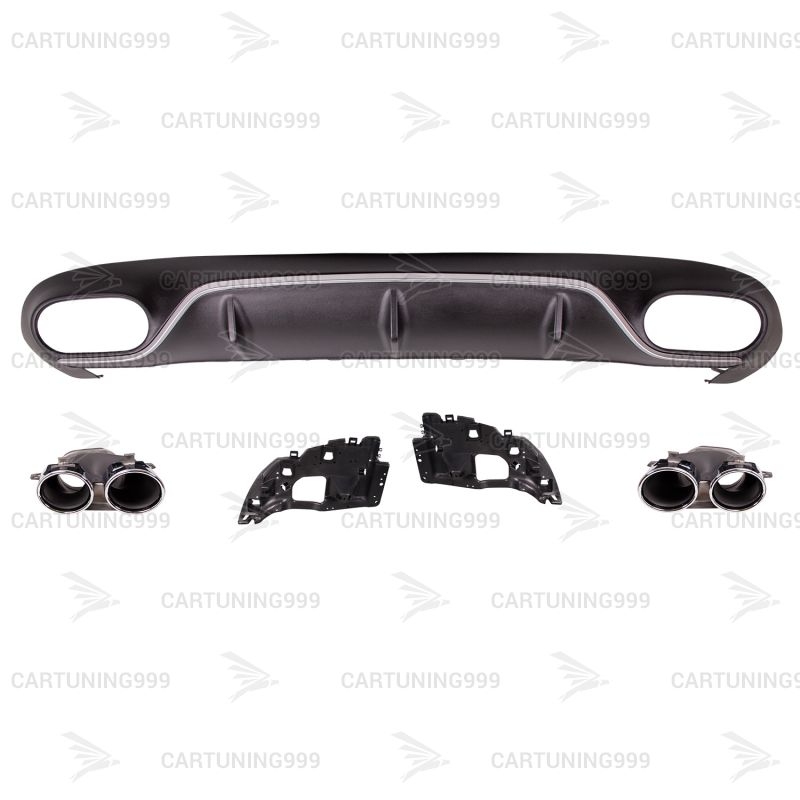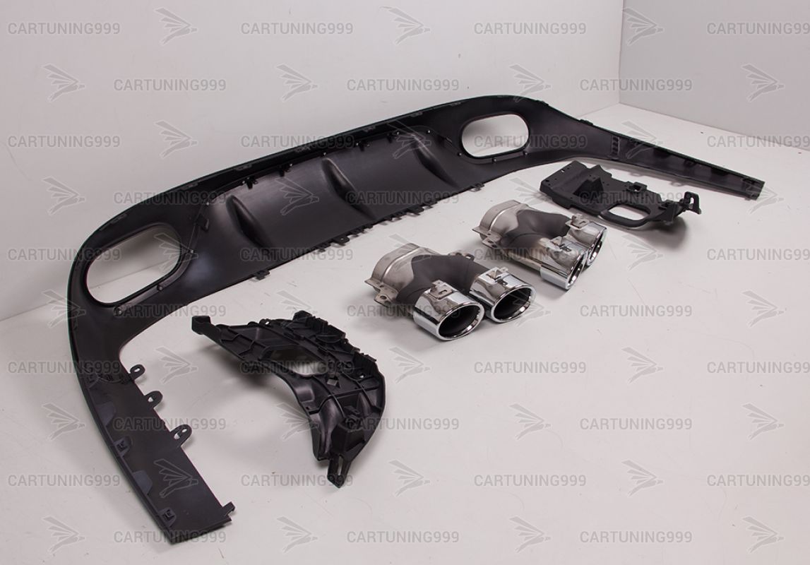Диффузор с насадками 53 AMG на Mercedes E-class C238 изготовлены из высококачественных материалов и устанавливаются в штатные места без переделок и доработок. В комплект входит: диффузор с серебристым молдингом, кронштейны насадок и хромированные насадки.