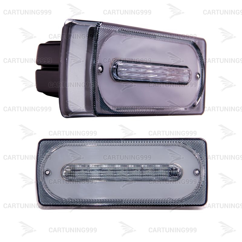 Диодные серые фонари на Mercedes W463 устанавливаются в штатные места без переделок и доработок. В комплект фонарей на гелендваген входит: два фонаря серого цвета и комплект крепежа. Стопы на Mercedes G463 устанавливается на любой год автомобиля.