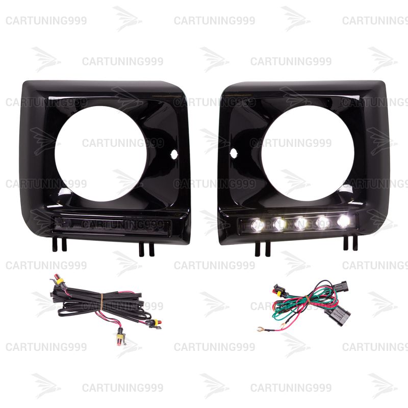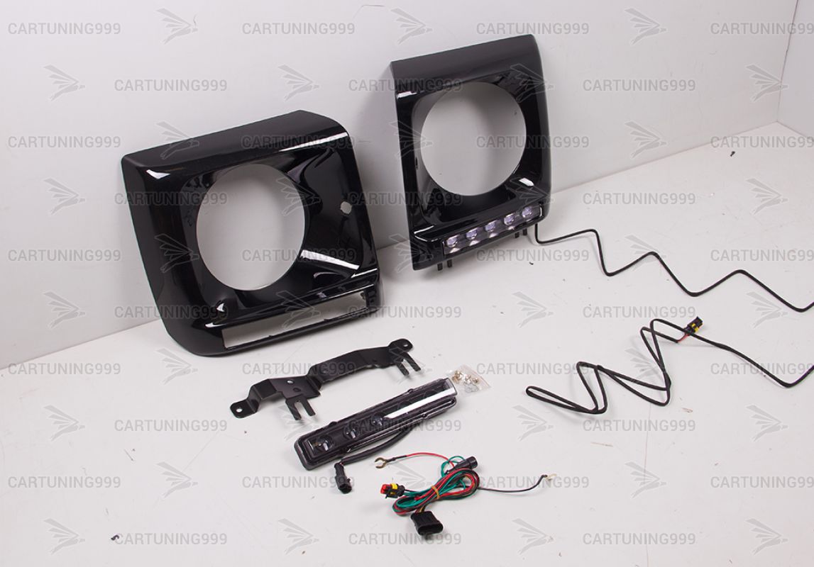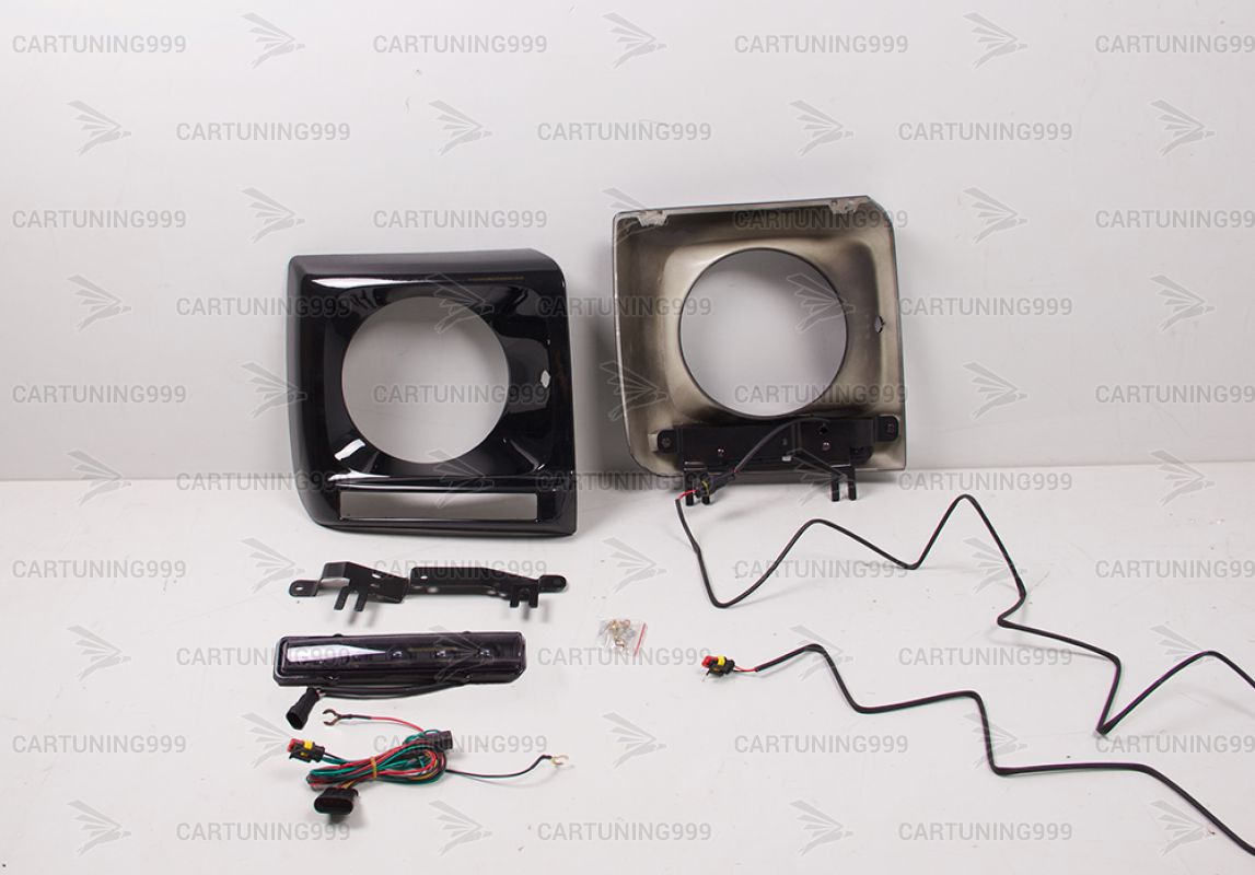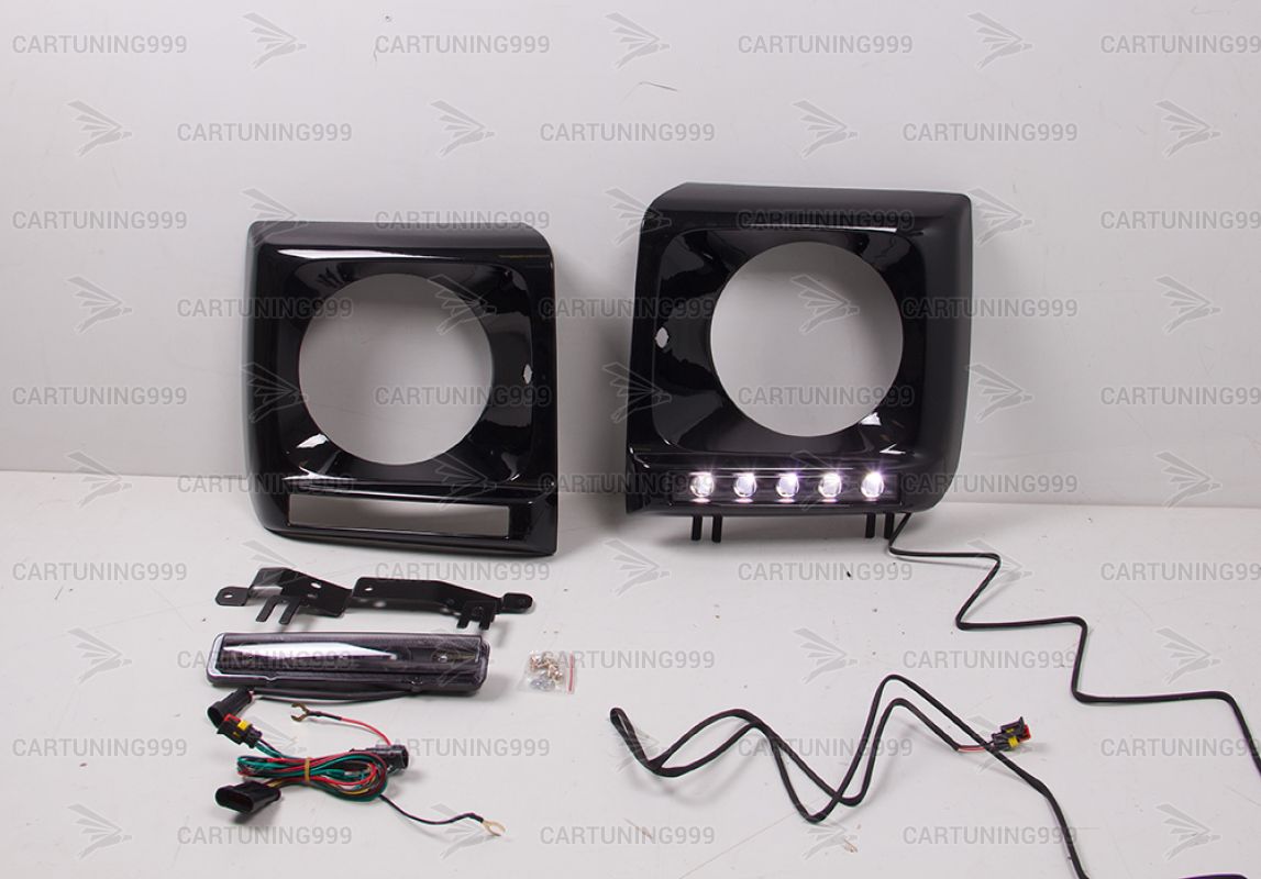 Черные маски фар на Mercedes G-Class W463 устанавливаются в штатные места без переделок и доработок. В комплект очков на гелендваген входит: маски фар, черные ходовые, кронштейны ходовых. Очки на Mercedes G463 окрашены в черный 197 цвет.