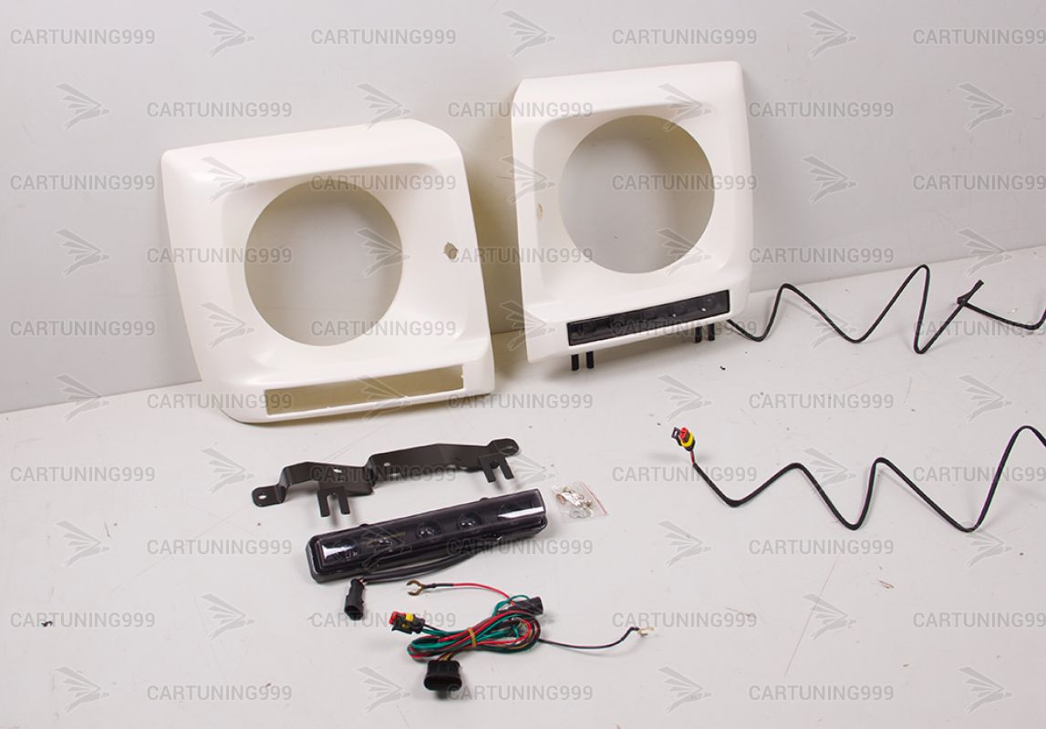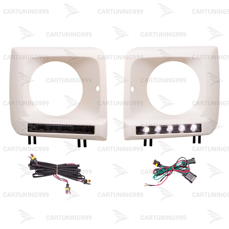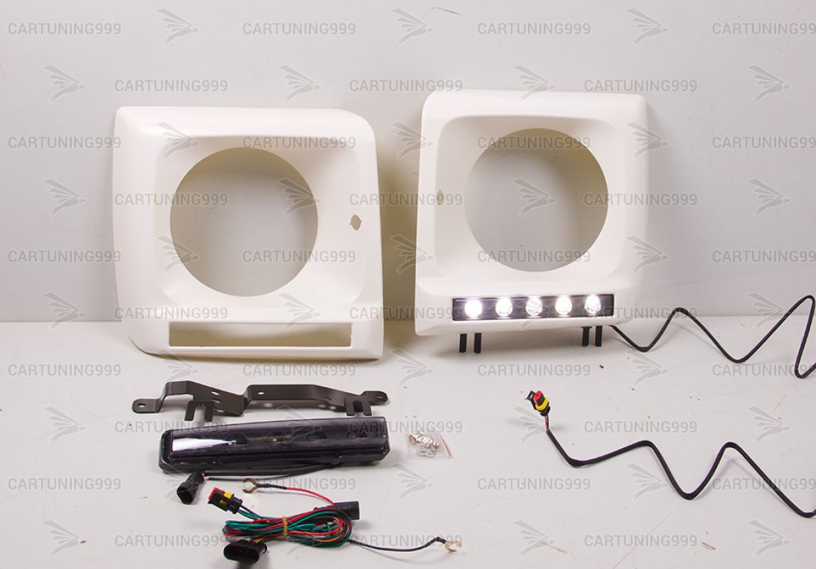 Маски фар на Mercedes G-Class W463 устанавливаются в штатные места без переделок и доработок. В комплект очков на гелендваген входит: маски фар, черные ходовые, кронштейны ходовых. Очки на Mercedes G463 поставляются под окрас.