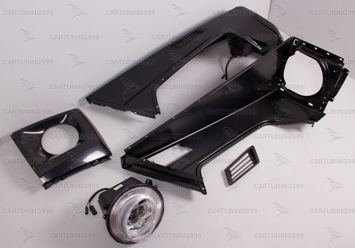 Обвес рестайлинга 63 AMG на Mercedes G-class W463 изготовлен из высококачественных материалов и устанавливается в штатные места без переделок и доработок. В комплект обвеса входит:капот, решетка на капот, передние крылья, жабры в крылья, передний бампер в сборе, решетка радиатора, фары передние, маски на фары, поворотники на крылья, расширители колесных арок, подкрылки, законцовки порогов, задний бампер в сборе, брызговики задние, задние фонари, комплект крепежа.
