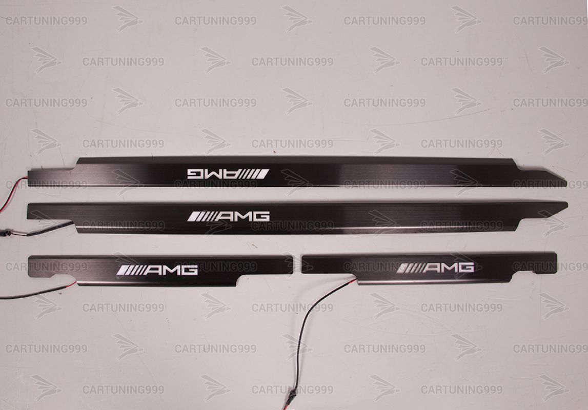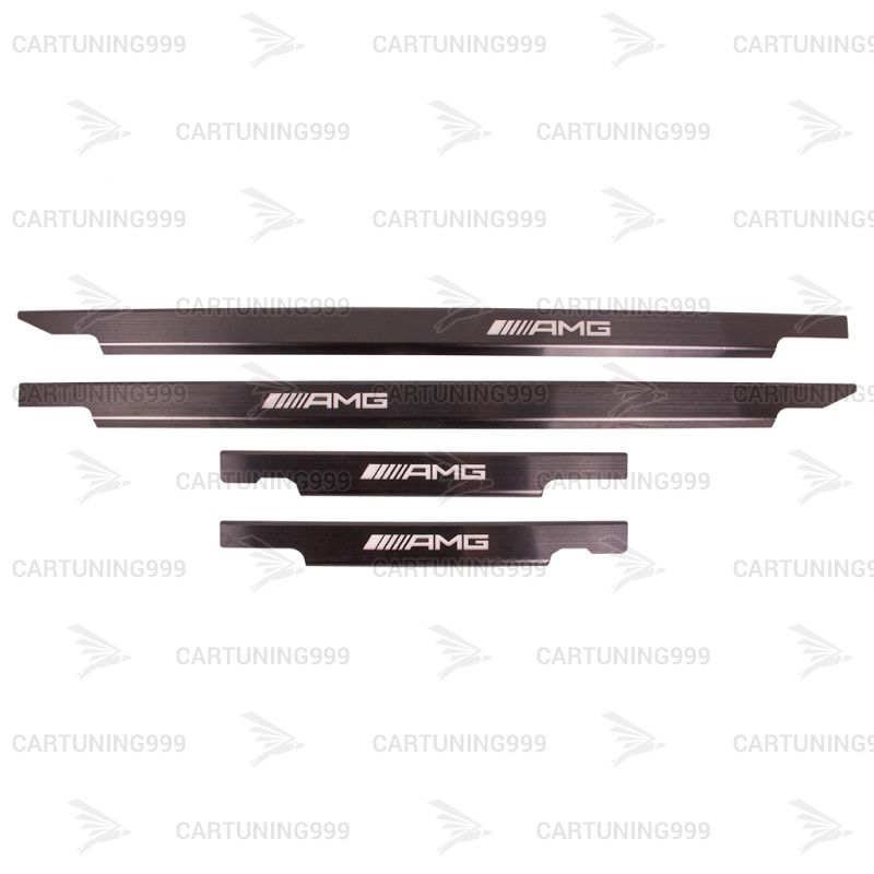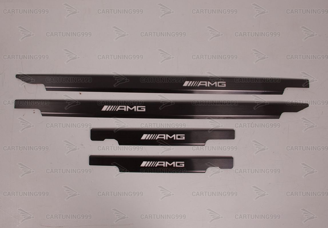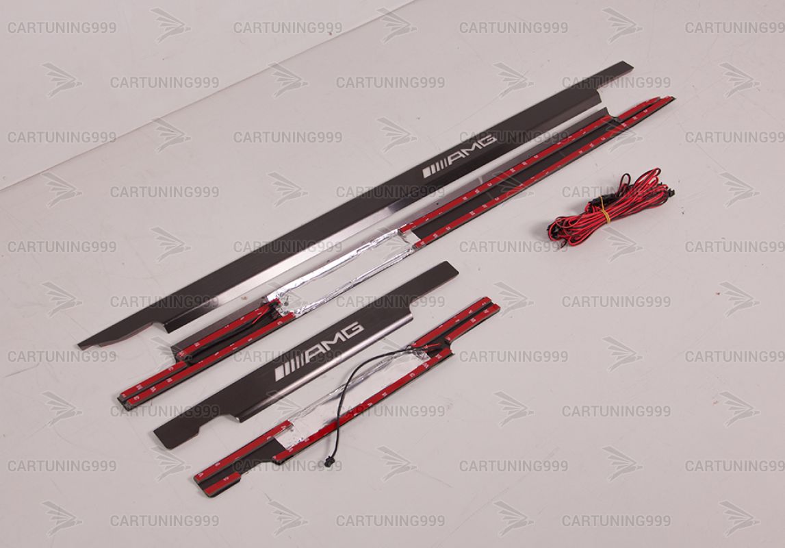 Черные накладки на пороги AMG для Mercedes G-Class W463 устанавливаются в штатные места без переделок и доработок. В комплект порогов на гелендваген входит: 4 накладки на внутренние салонные пороги. Диодные накладки на пороги Mercedes G463 устанавливаются на любой год автомобиля.