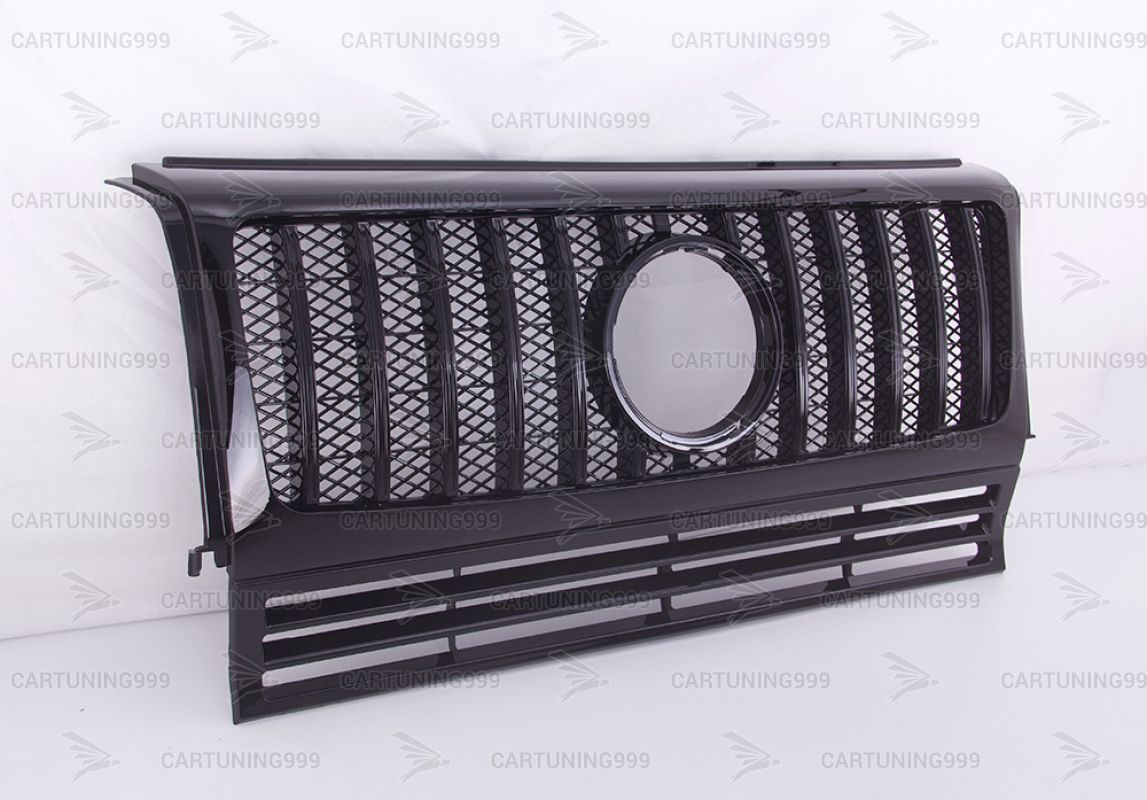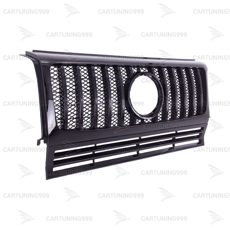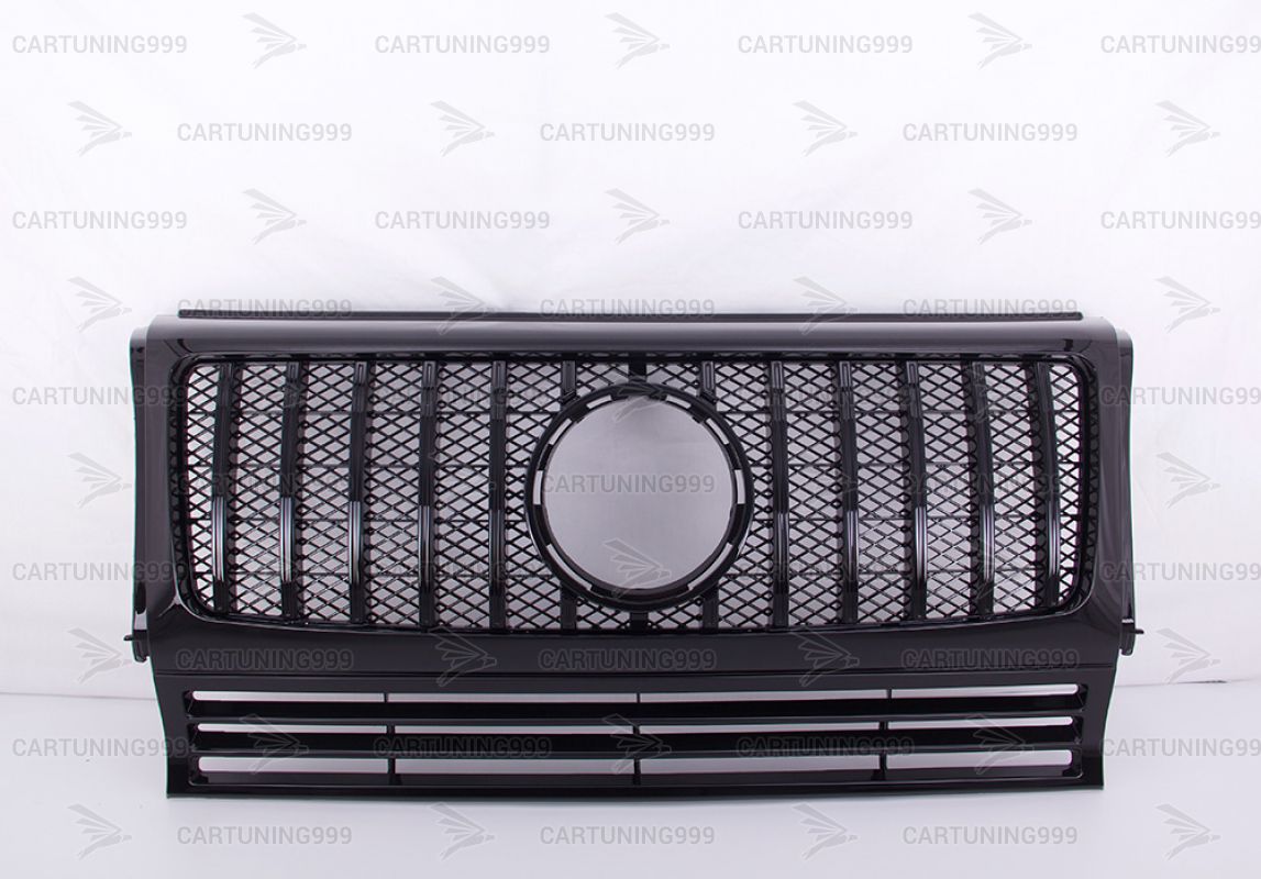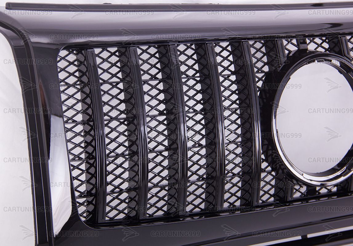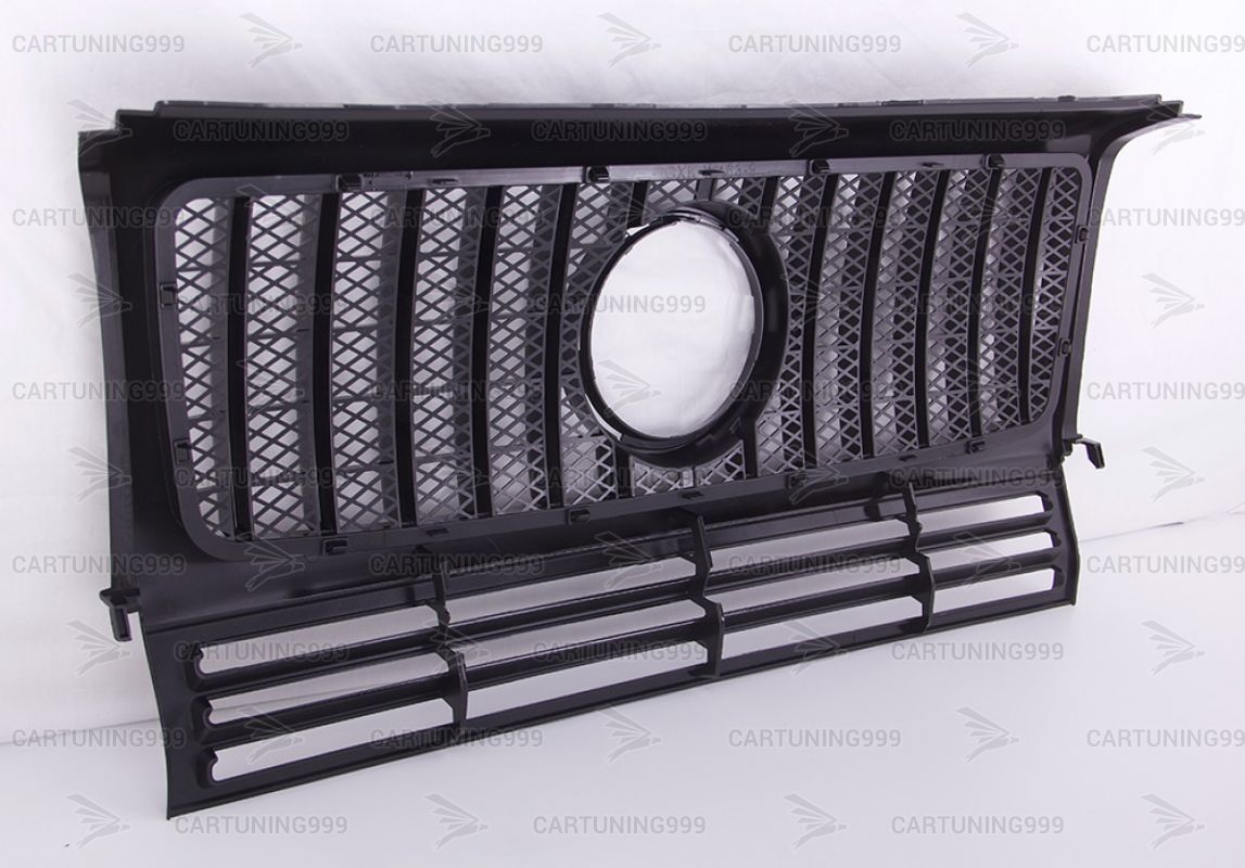 Черная решетка радиатора GT дизаинна Mercedes W463 устанавливаются в штатные места без переделок и доработок. Решетка радиатора на гелендваген окрашена в черный цвет. Решетка Mercedes G463 устанавливается на любой год автомобиля.