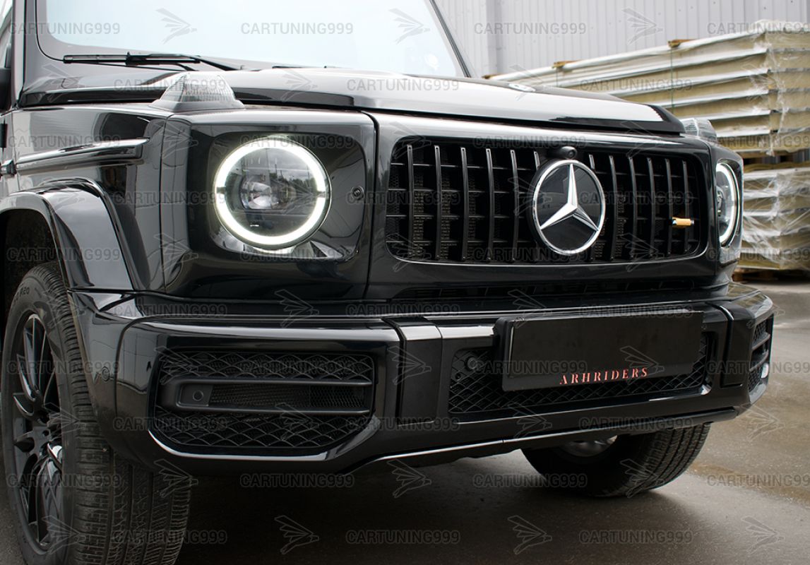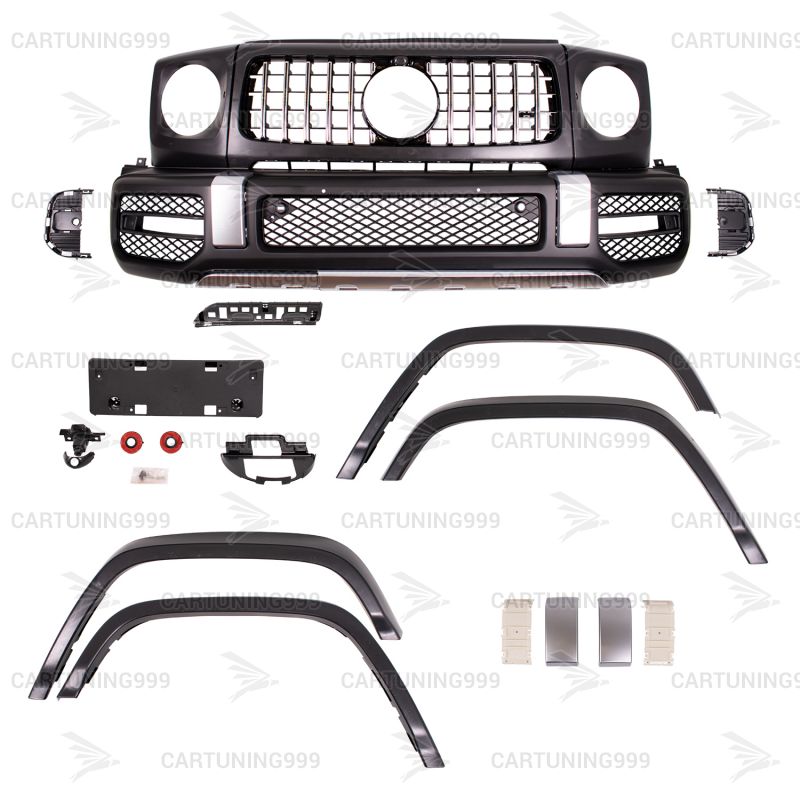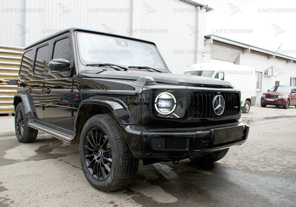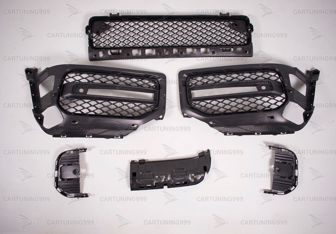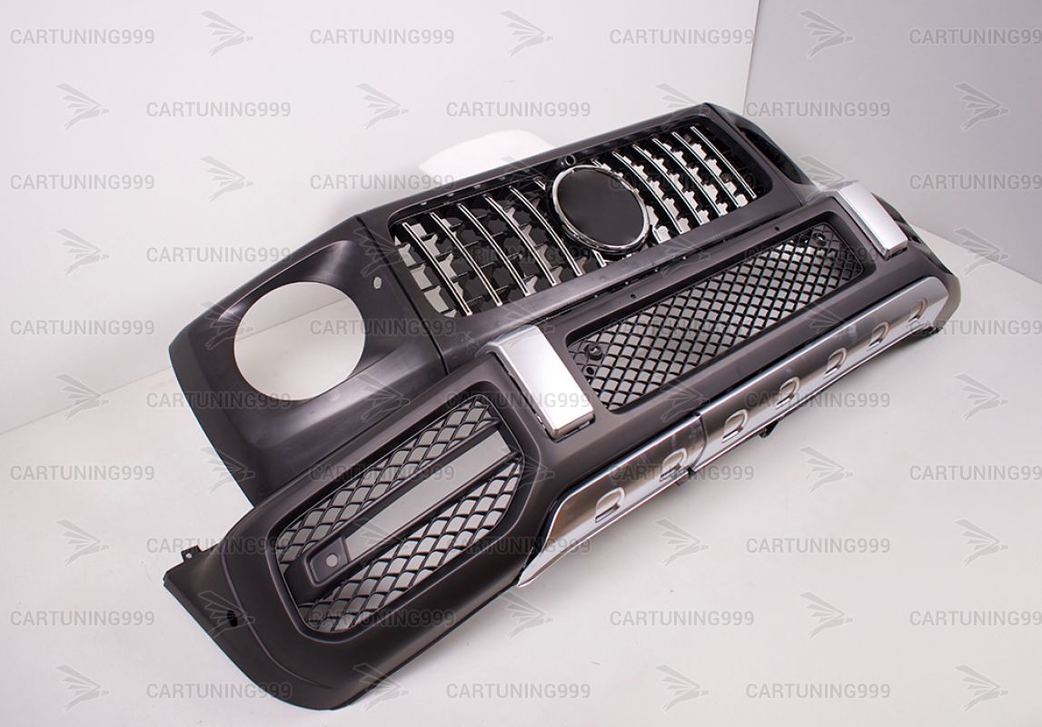 Обвес 63 AMG Mercedes G-class W463 изготовлен из высококачественных материалов и устанавливается в штатные места без переделок и доработок. В комплект входит: передний бампер,решетка радиатора, очки на фары, расширители колесных арок и комплект крепежа.