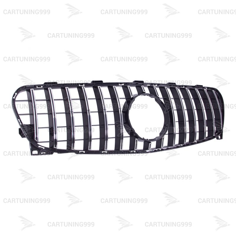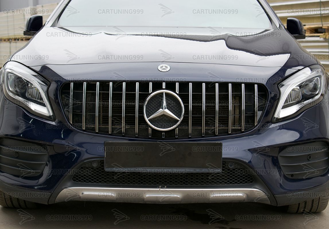 Решетка радиатора GT дизайн на Mercedes GLA X156 изготовлена из высококачественных материалов и устанавливается в штатные места без переделок и доработок. Цвет решетки черная с хромом.