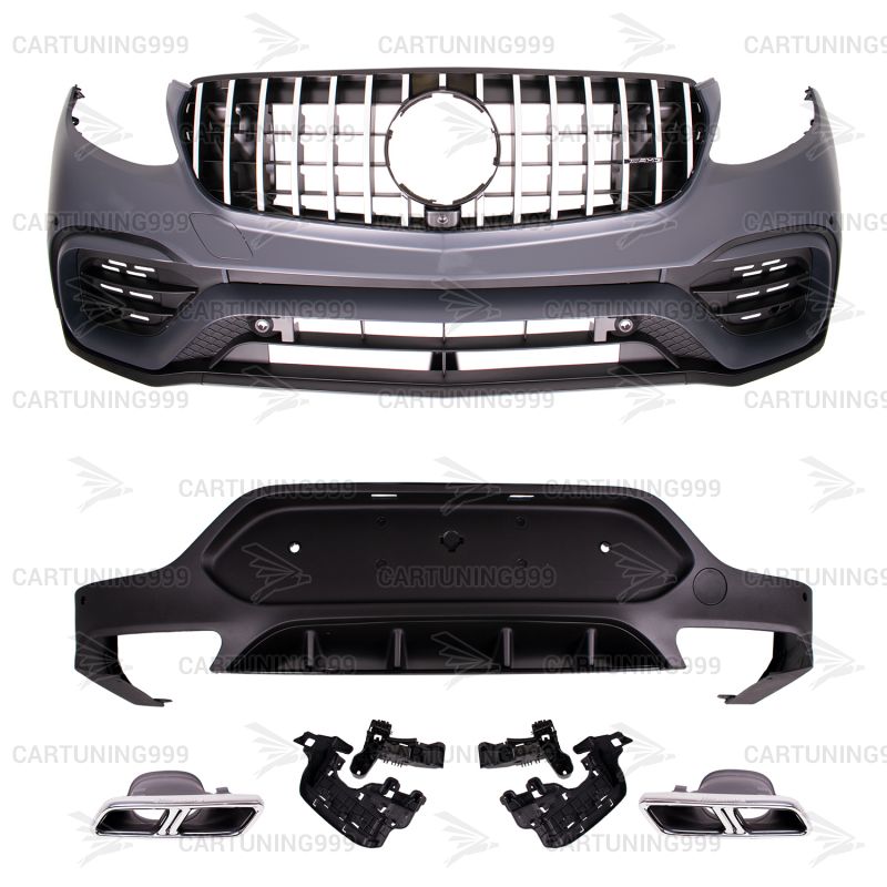 Обвес 63s AMG Mercedes GLC Coupe C253 изготовлен из высококачественных материалов. Устанавливаются в штатные места без переделок и доработок. В комплект входит: передний бампер в сборе, решетка радиатора с шильдиком AMG, насадки на выхлопные трубы с гравировкой AMG, комплект крепежа.