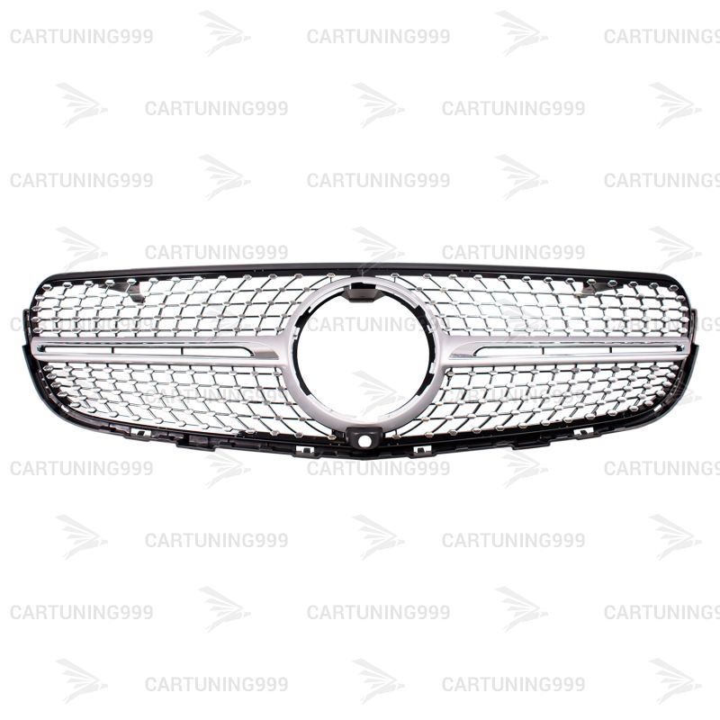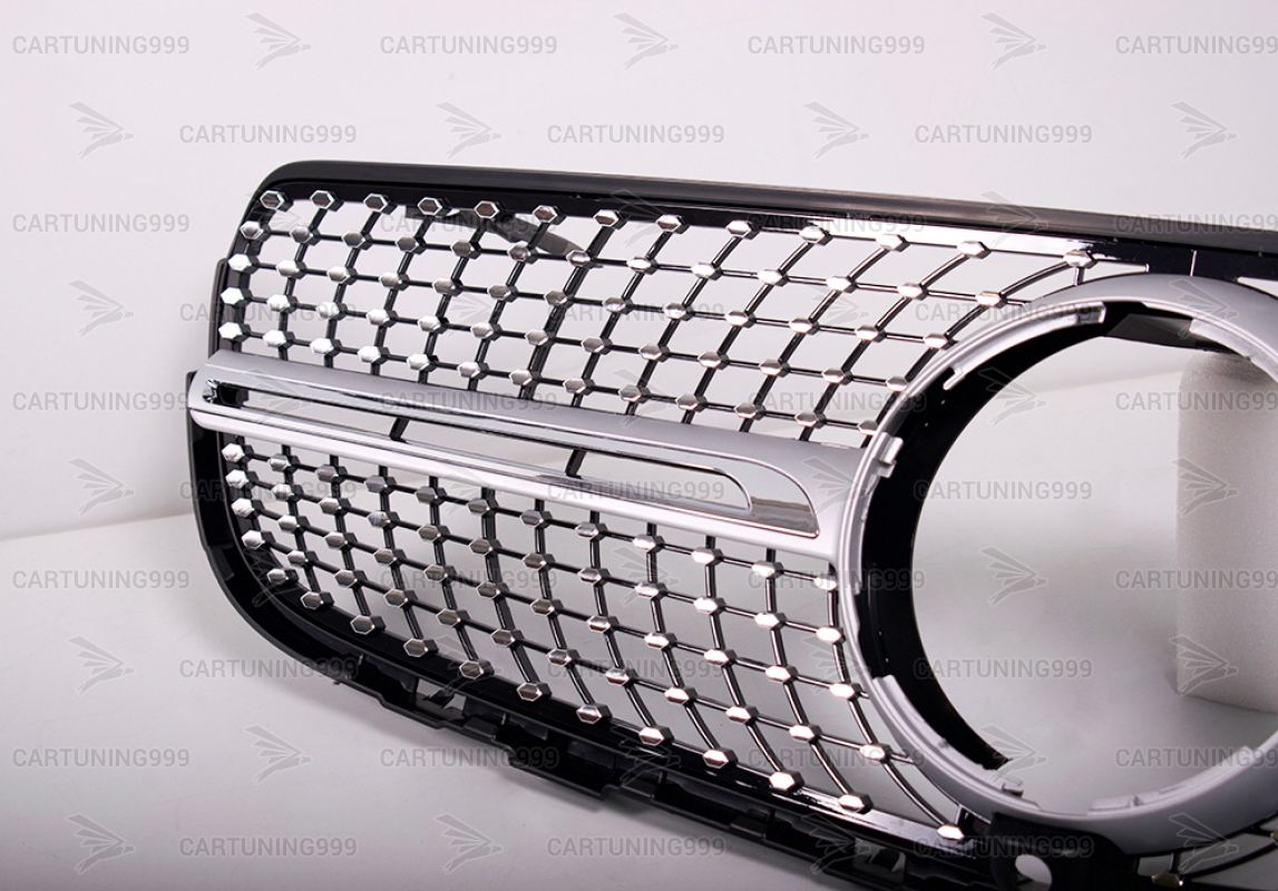 Серебристая решетка радиатора 43 AMG на Mercedes GLC Coupe С253 под камеру устанавливается в штатные места бампера.
