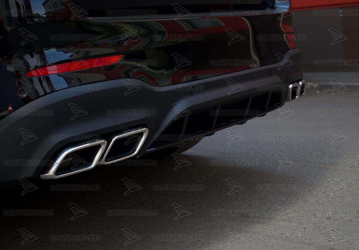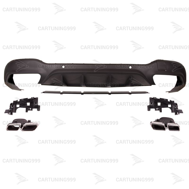 Задний диффузор с насадками от версии 63 AMG для бензинового Mercedes GLC с установленным AMG пакетом. В комплект входит: диффузор, крепеж насадок, насадки на глушитель c гравировкой AMG.