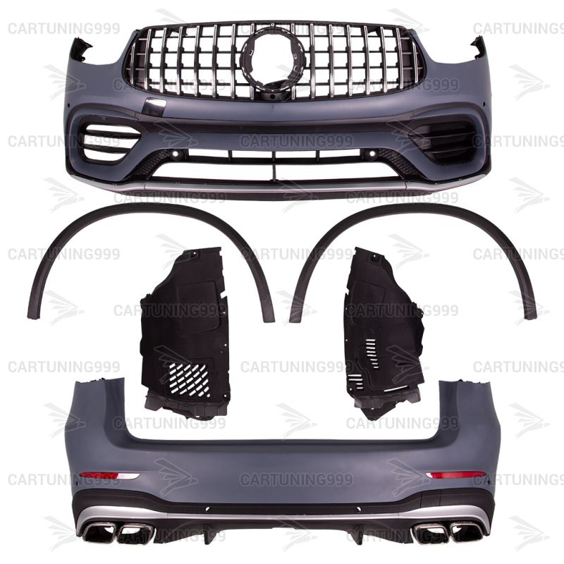 Обвес 63s AMG на Mercedes GLC X253 изготовлен из высококачественных материалов и устанавливается в штатные места без переделок и доработок. В комплект обвеса входит: решетка радиатора, передний бампер в сборе, передние подкрылки, задний бампер с диффузором и насадками на глушитель, задние расширители арок, комплект крепежа.