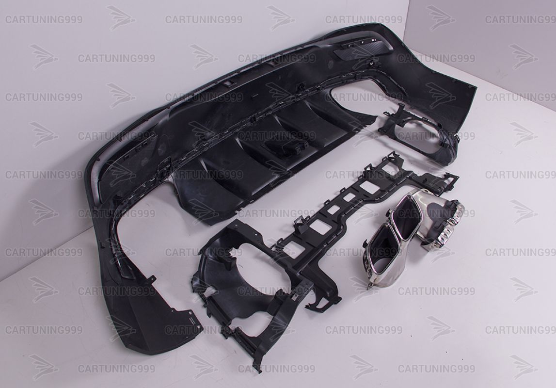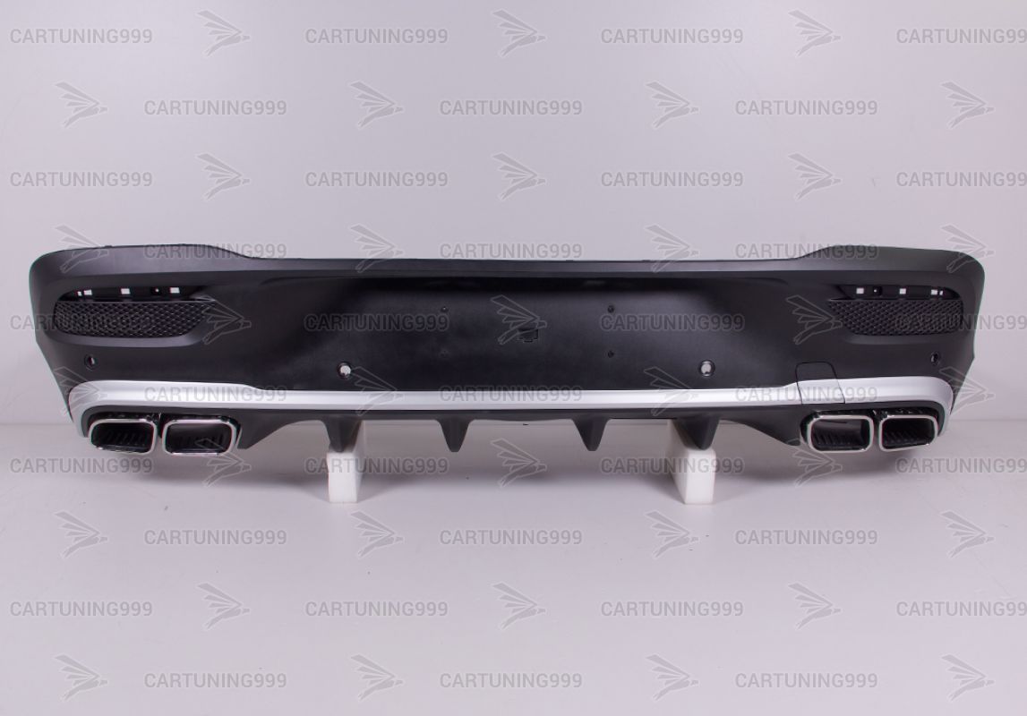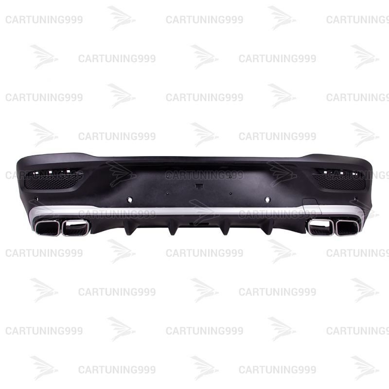 Диффузор с насадками 63 AMG на Mercedes GLE Coupe C167 изготовлены из высококачественных материалов и устанавливается в штатные места без переделок и доработок. В комплект входит, диффузор заднего бампера с серебристой вставкой, кронштейны насадок, хромированные насадки на глушитель с гравировкой amg.