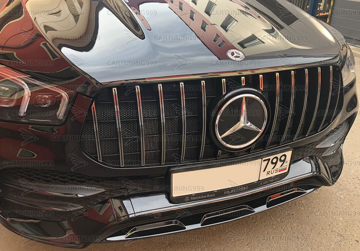 Решетка радиатора GT дизайн Mercedes GLE Coupe C 167 изготовлена из высококачественных материалов и устанавливается в штатные места без переделок и доработок.
