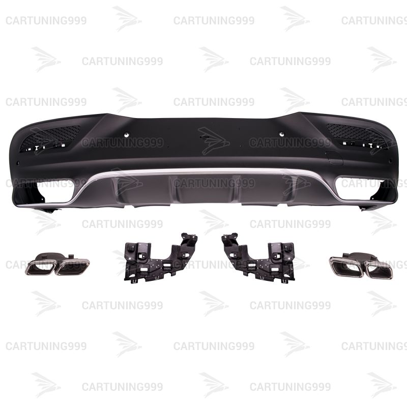 Задний диффузор с насадками от версии 63 AMG для Mercedes GLE Coupe С292 с установленным AMG пакетом. В комплект входит: диффузор, крепеж насадок, насадки на глушитель c гравировкой AMG.