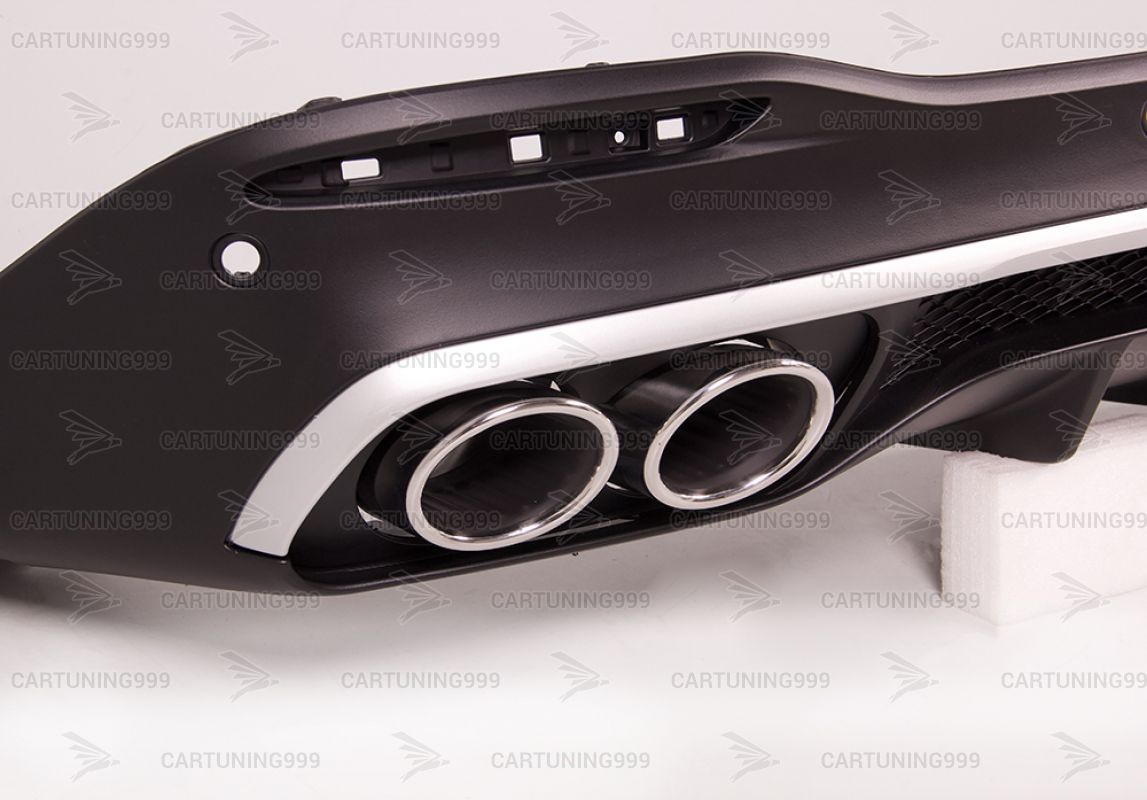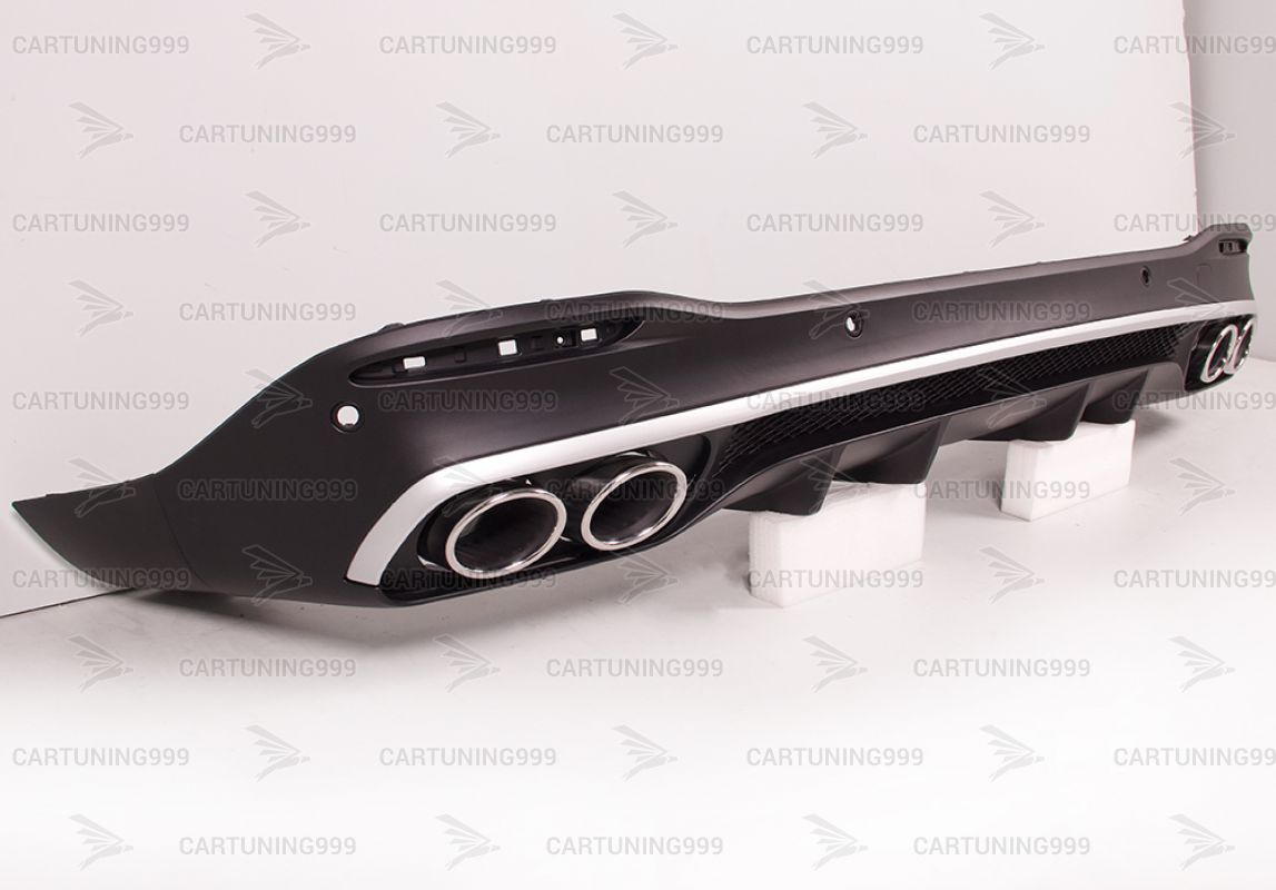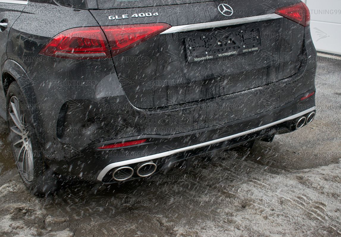 Диффузор с насадками 53 AMG на Mercedes GLE V167 изготовлены из высококачественных материалов и устанавливаются в штатные места. В комплект входит: диффузор, вставка в диффузор серебристого цвета, кронштейны насадок, насадки на выхлопные трубы хром и комплект крепежа.