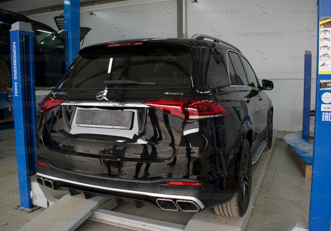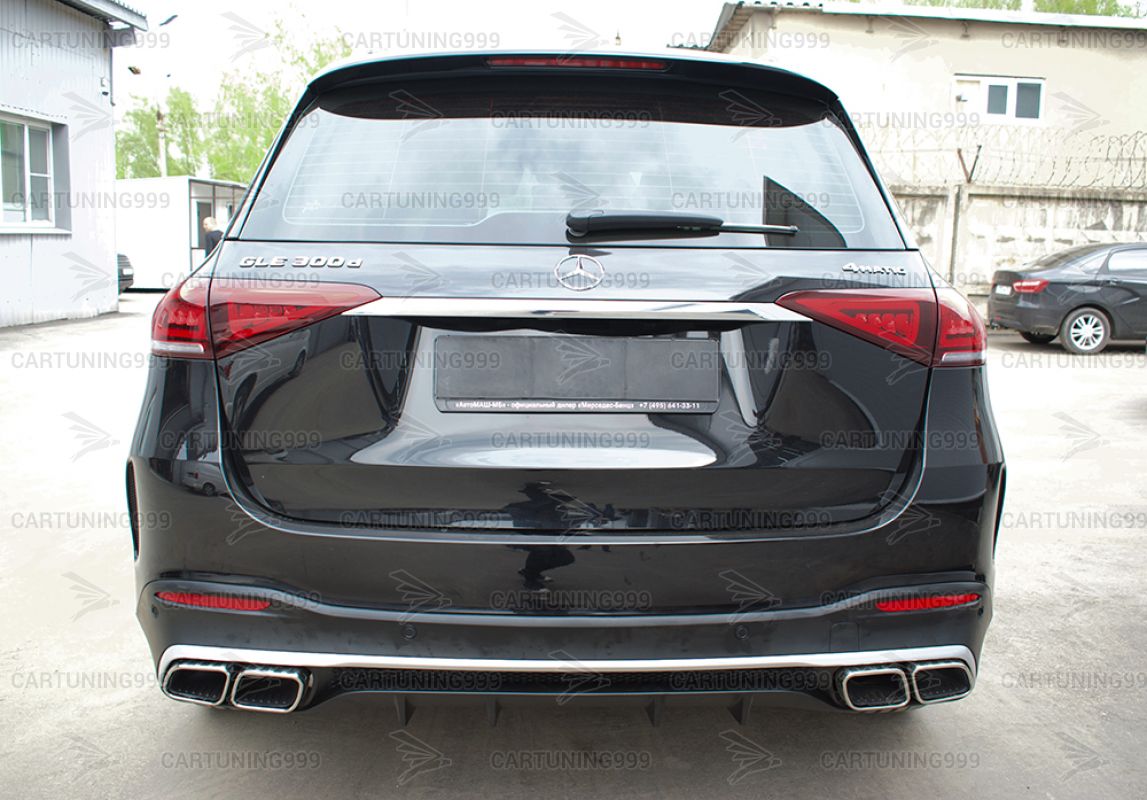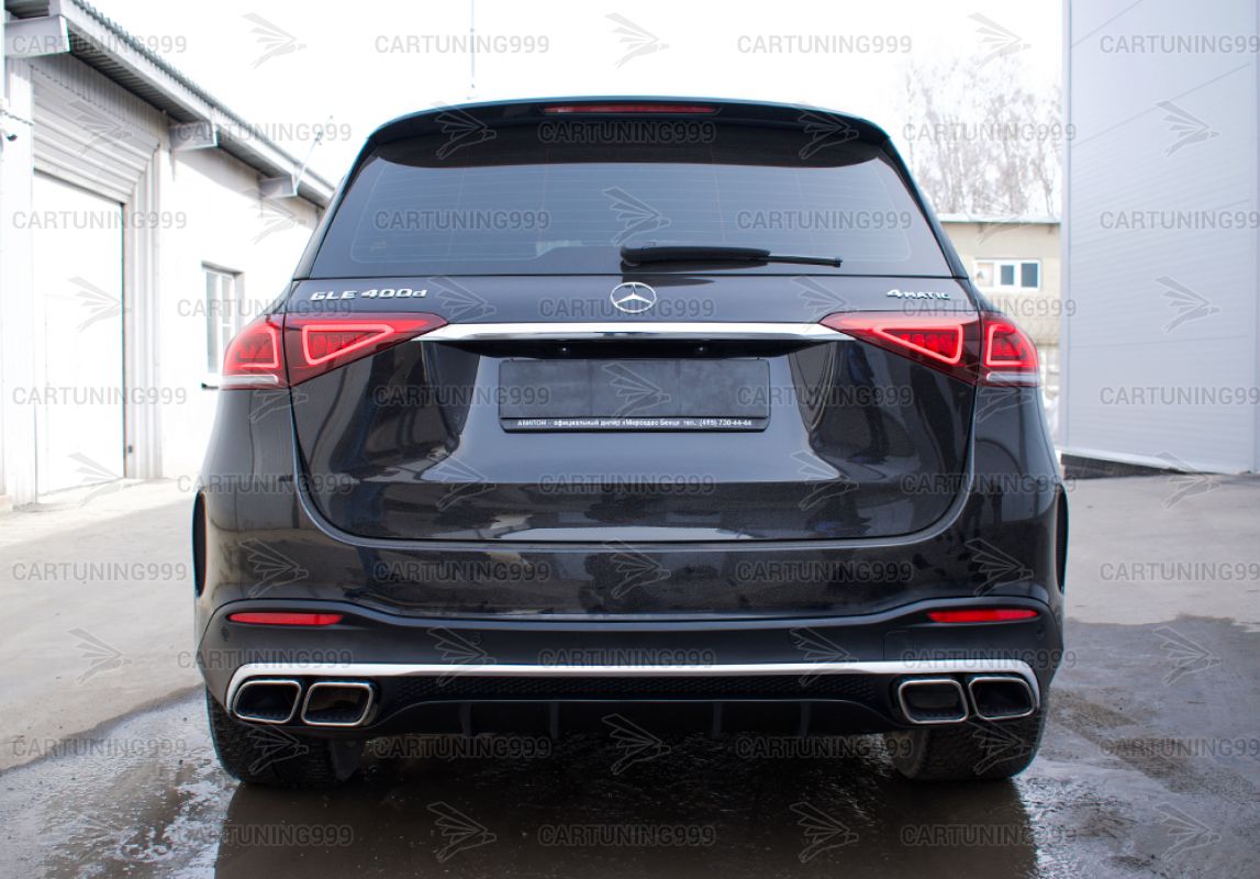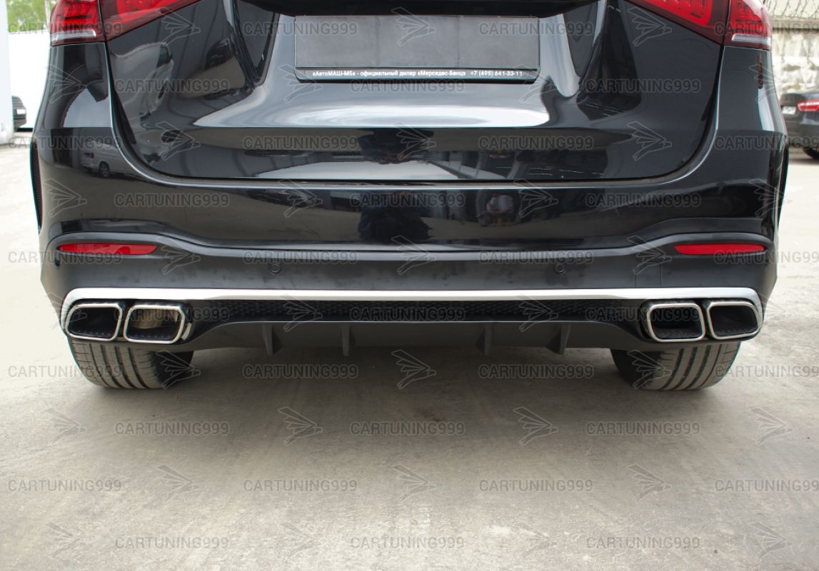 Диффузор с насадками 63 AMG на Mercedes GLE V167 изготовлены из высококачественных материалов и устанавливаются в штатные места бампера без переделок и доработок. В комплект входит диффузор заднего бампера, кронштейны насадок, насадки с гравировкой AMG хромированного цвета.