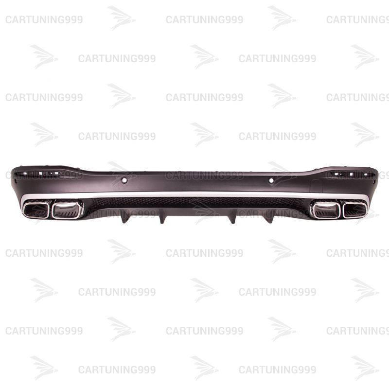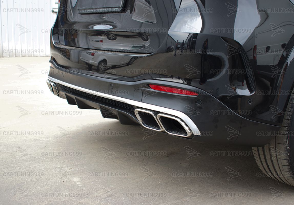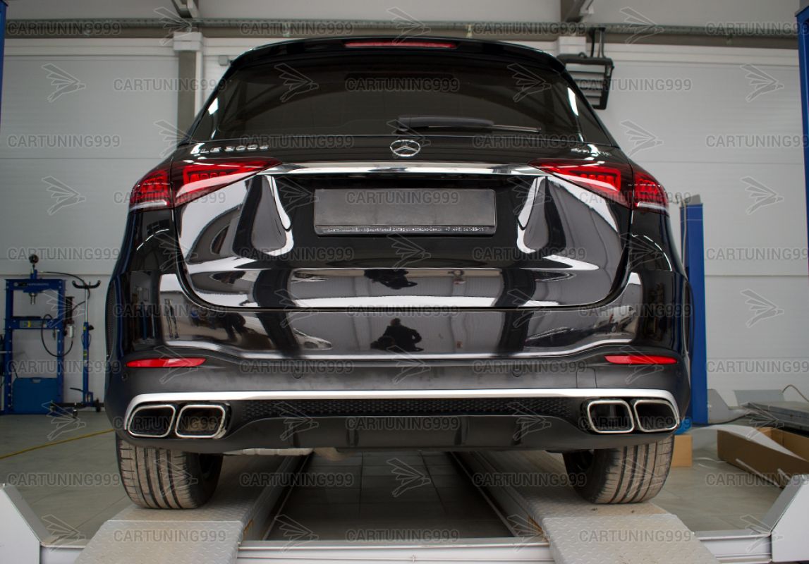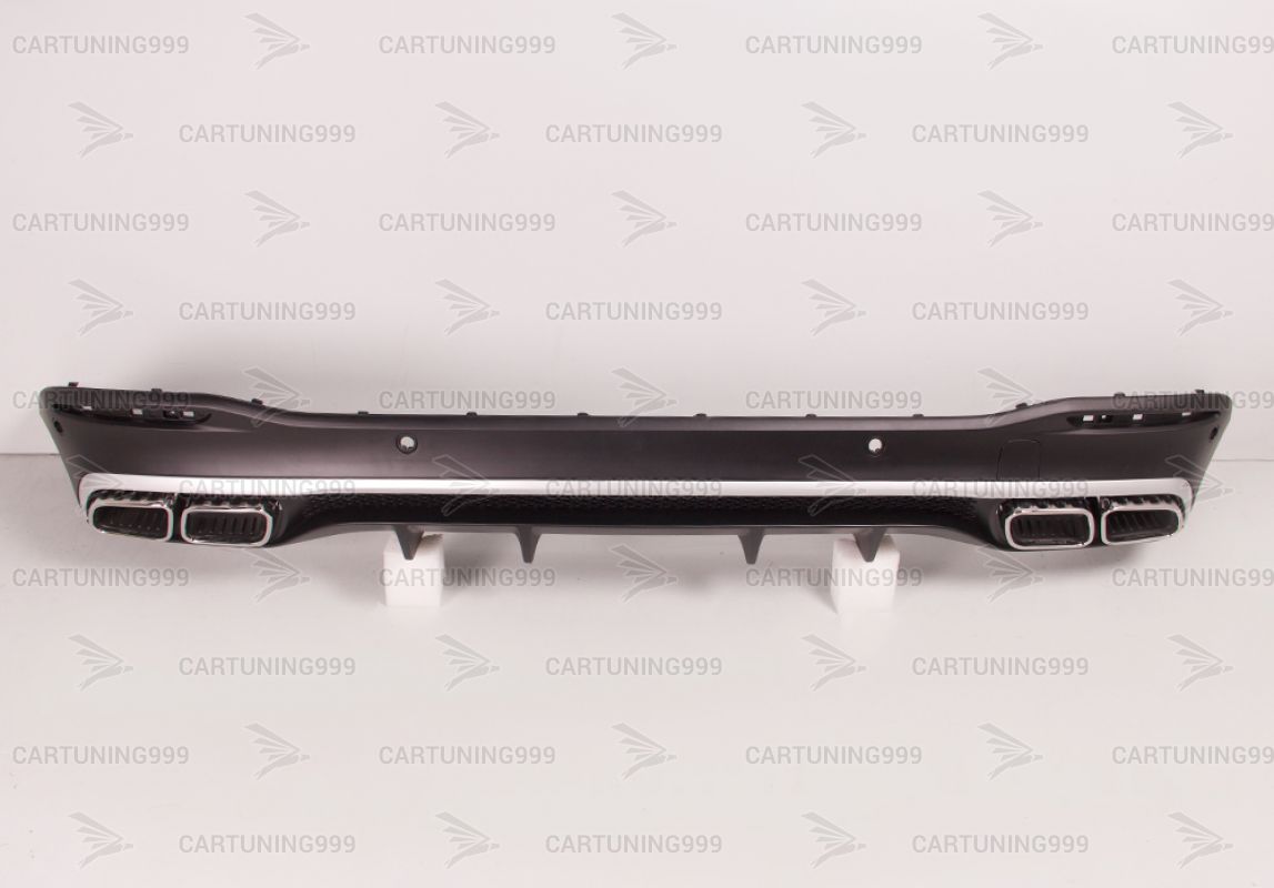 Диффузор с насадками 63 AMG на Mercedes GLE V167 изготовлены из высококачественных материалов и устанавливаются в штатные места бампера без переделок и доработок. В комплект входит диффузор заднего бампера, кронштейны насадок, насадки с гравировкой AMG хромированного цвета.