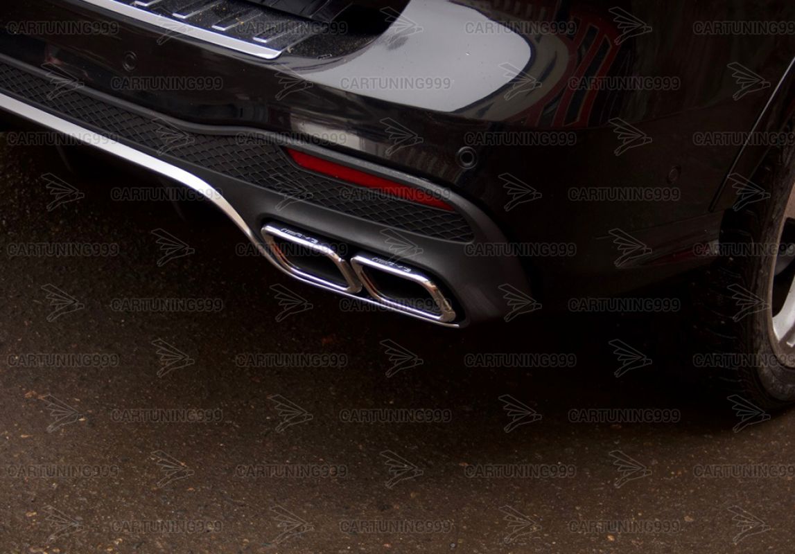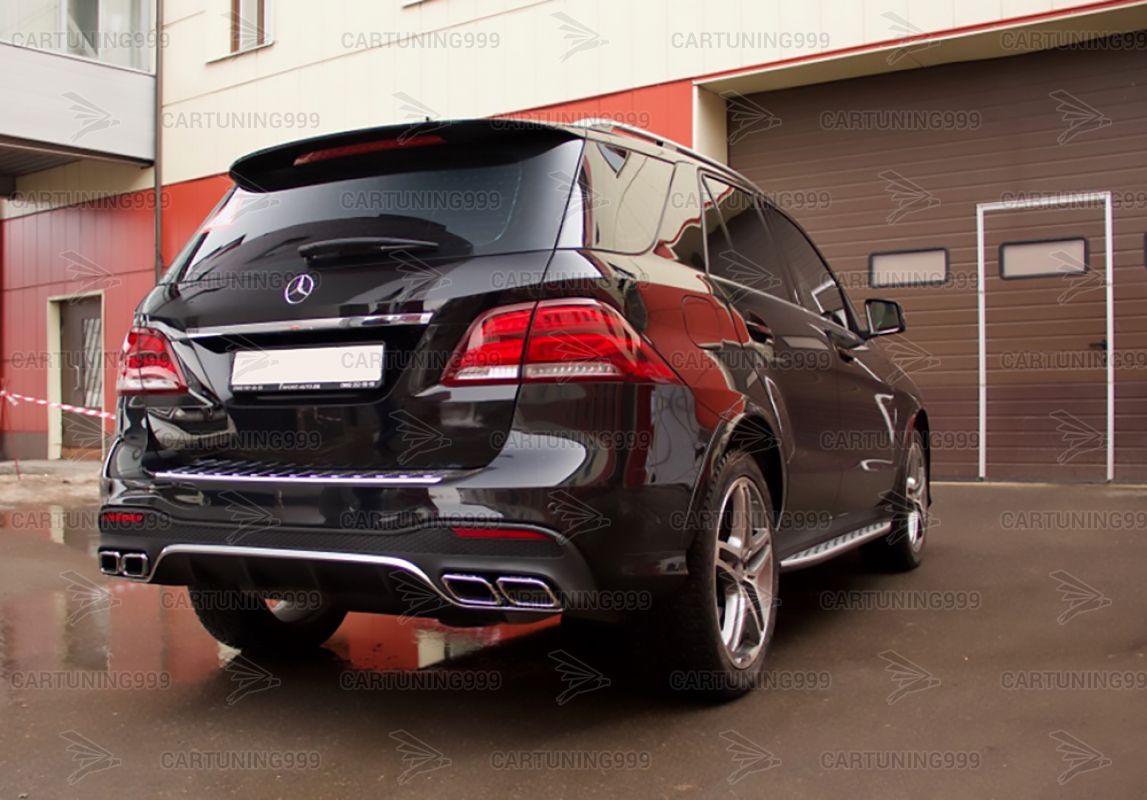 Задний диффузор с насадками от версии 63 AMG для Mercedes GLE W166 с установленным AMG пакетом. В комплект входит: диффузор, крепеж насадок, насадки на глушитель c гравировкой AMG.