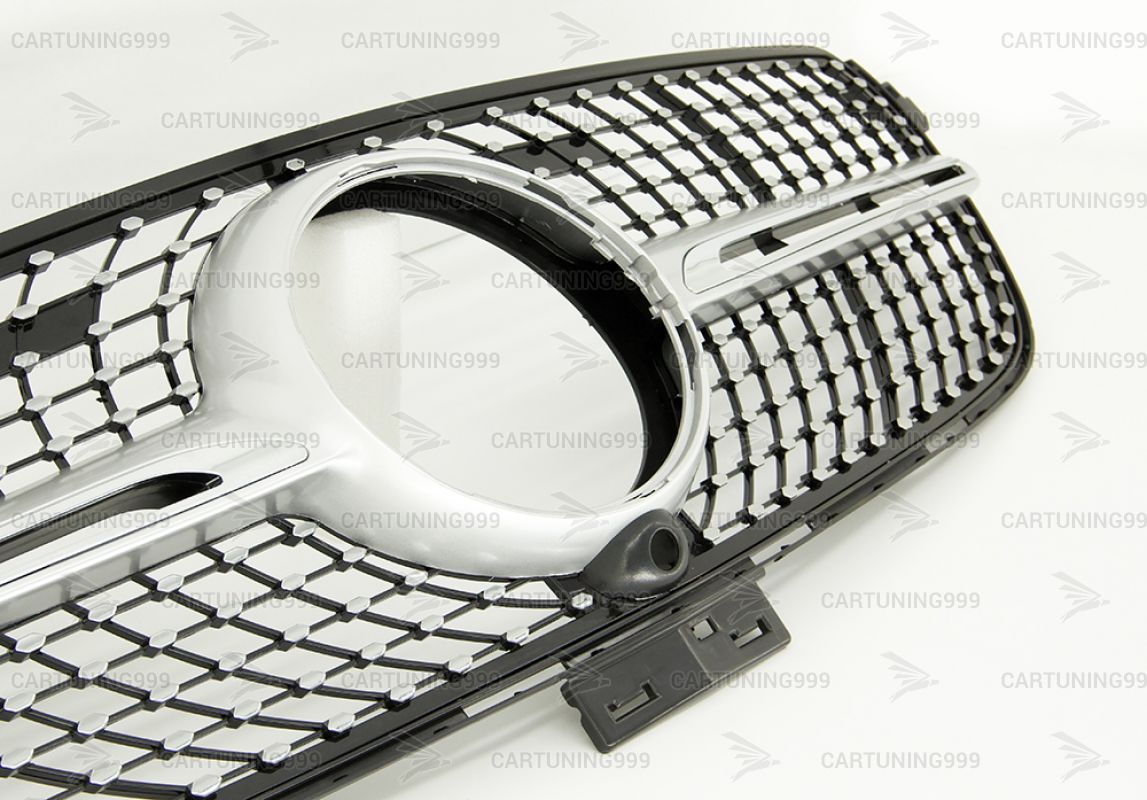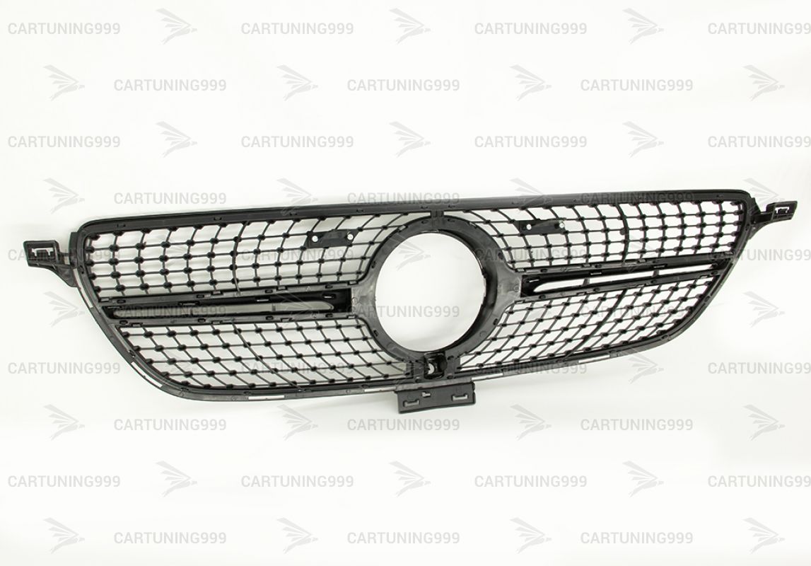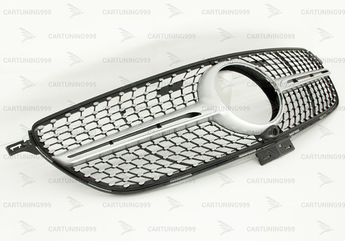 Серебристая решетка радиатора Diamond Sport на Mercedes GLE W166 устанавливается в штатные места бампера.