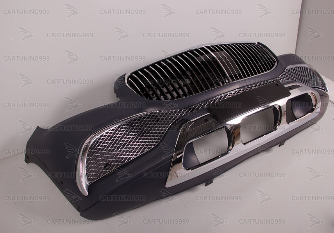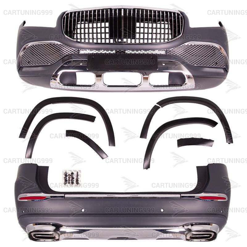 Обвес в стиле Maybach на Mercedes GLS X167 изготовлен из высококачественных материалов и поставляется под окрас. В комплект обвеса Maybach входит: передний бампер в сборе, решетка радиатора с надписью maybach, расширители колесных арок, задний бампер в сборе с диффузором и насадками, комплект крепежа.