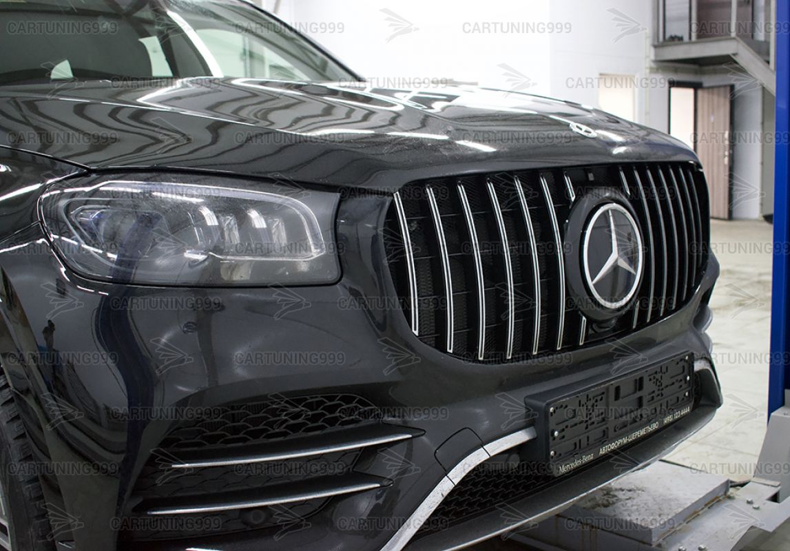 Решетка радиатора GT дизайн на Mercedes GLS X167 изготовлена из высококачественных материалов и устанавливается в штатные места без переделок и доработок.