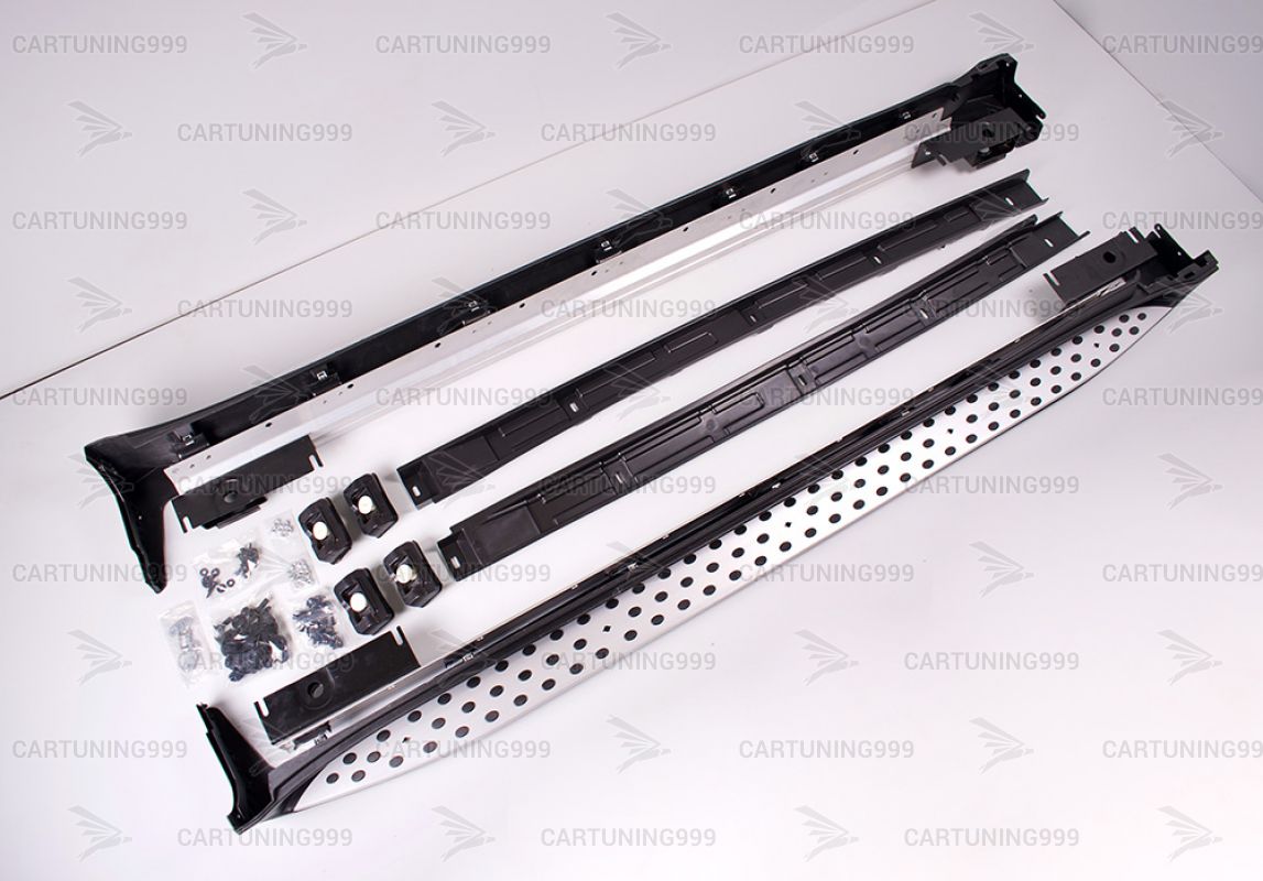 Пороги на Mercedes M-Class W164 устанавливаются в штатные места без переделок и доработок. В комплект порогов входят: два порога левый правый, комплект крепежа.