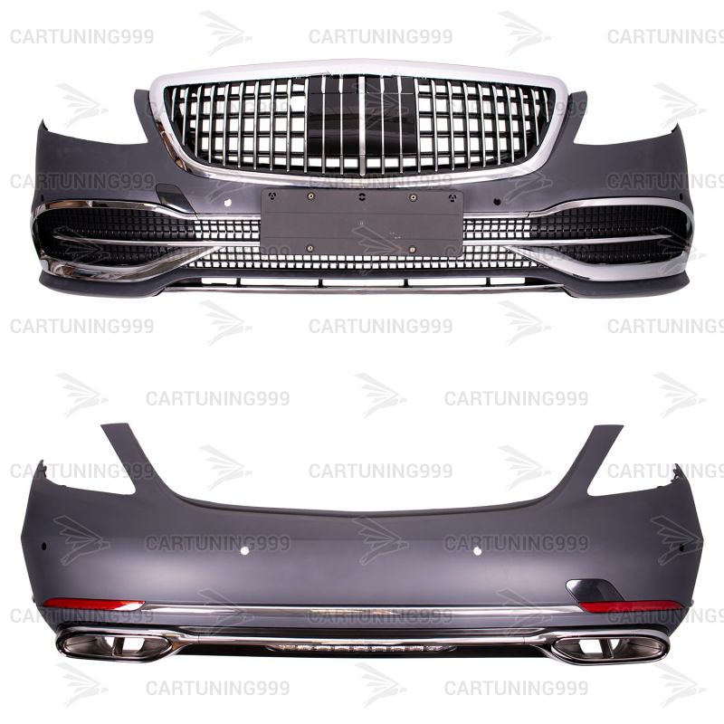 Комплект обвеса рестайлнинг Mercedes Maybach S-class X222 изготовлен из высококачественных материалов и устанавливается в штатные места без переделок и доработок. В комплект входит: передний бампер в сборе, решетка радиатора, задний бампер в сборе с насадками на глушитель, комплект хрома и комплект крепежа.