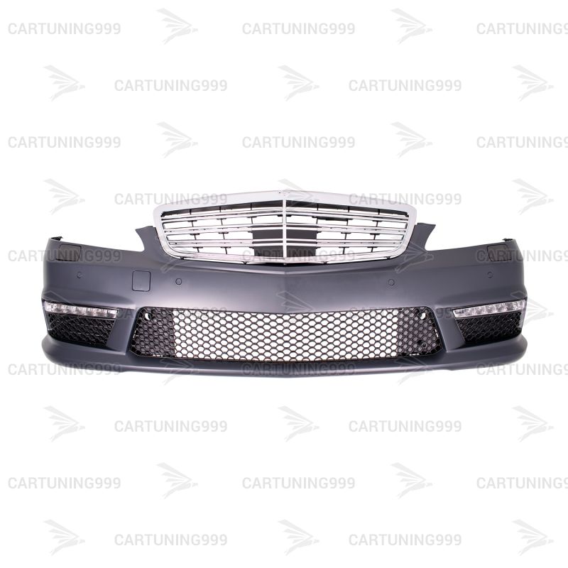 Передний бампер 63 AMG на Mercedes S-klass W221 и решетка радиатора