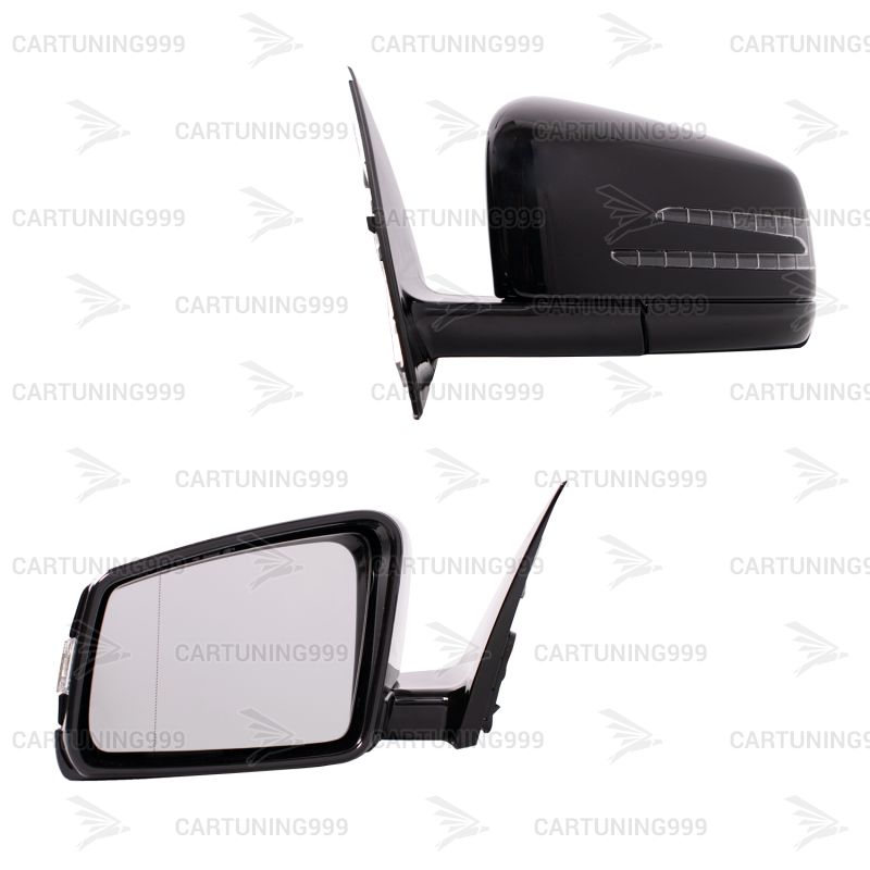 Черные рестайлинг зеркала на Mercedes S-Class S221 устанавливаются в штатные места без переделок и доработок. В комплект зеркал на гелендваген входит: два зеркала левое и правое, комплект проводки. Зеркала на Mercedes G463 устанавливаются на любой год автомобиля.